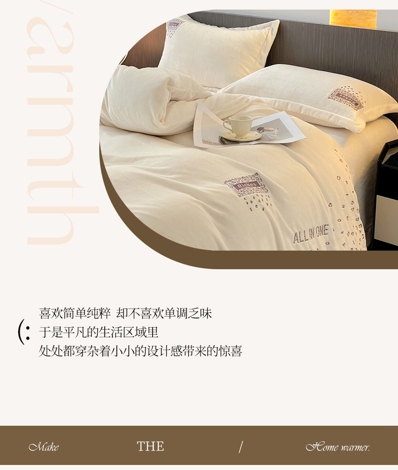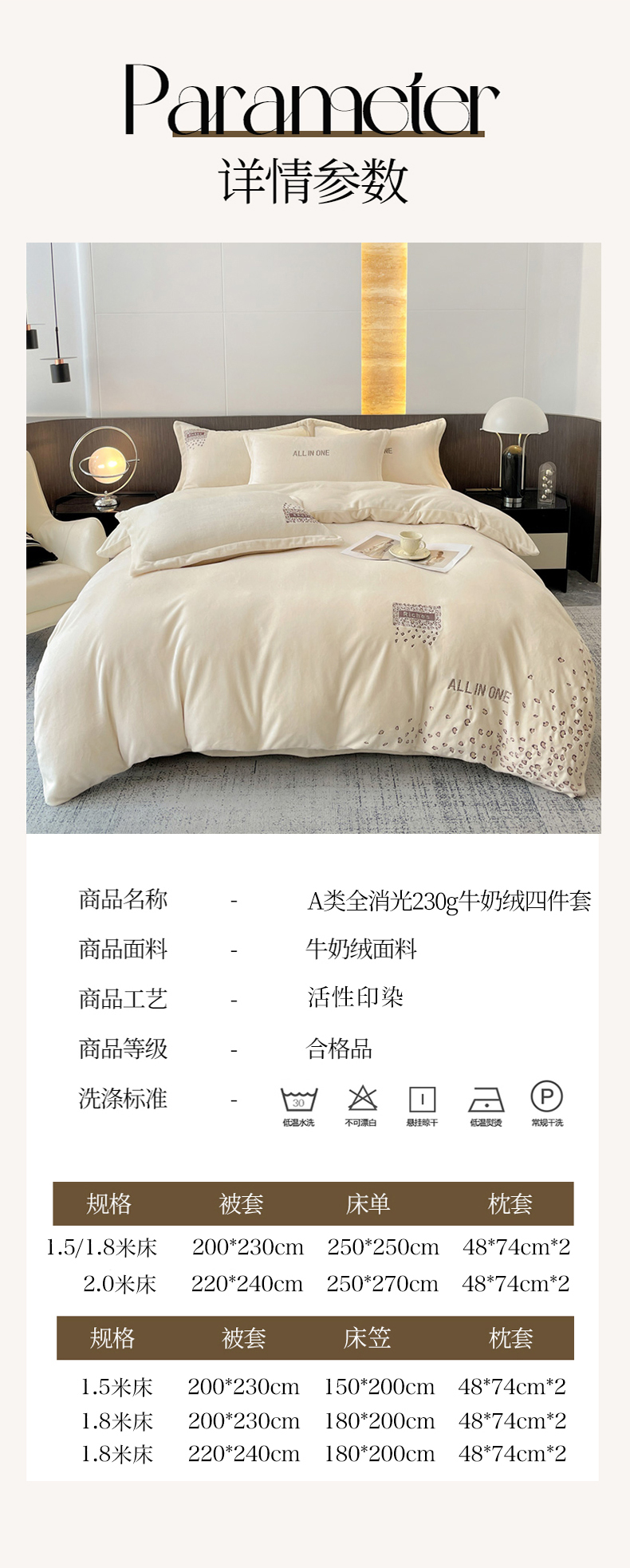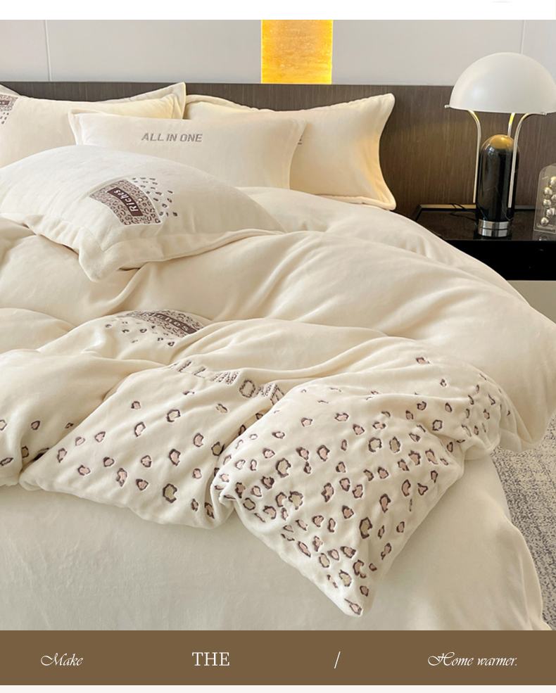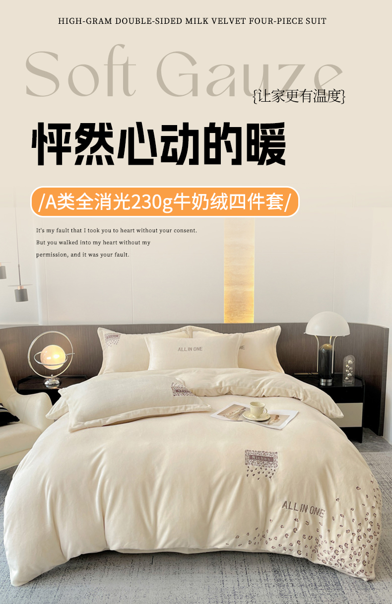 (总)星尚家纺 2024全消光A类230g牛奶绒绣花保暖绒四件套-豹纹,卡其色,奶昔白,时尚灰,芝芝粉