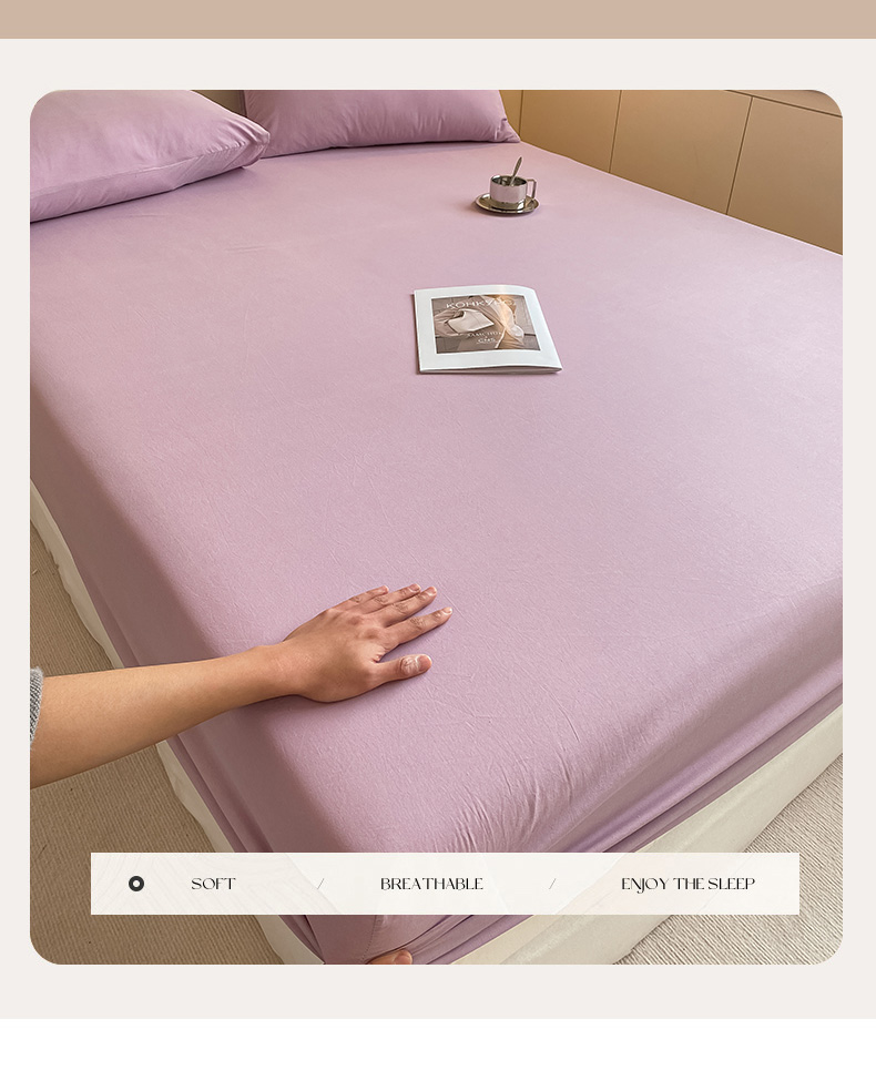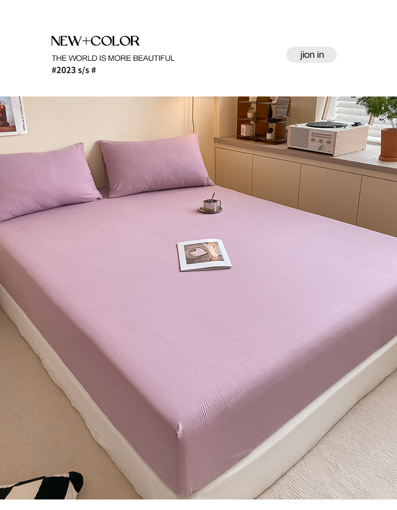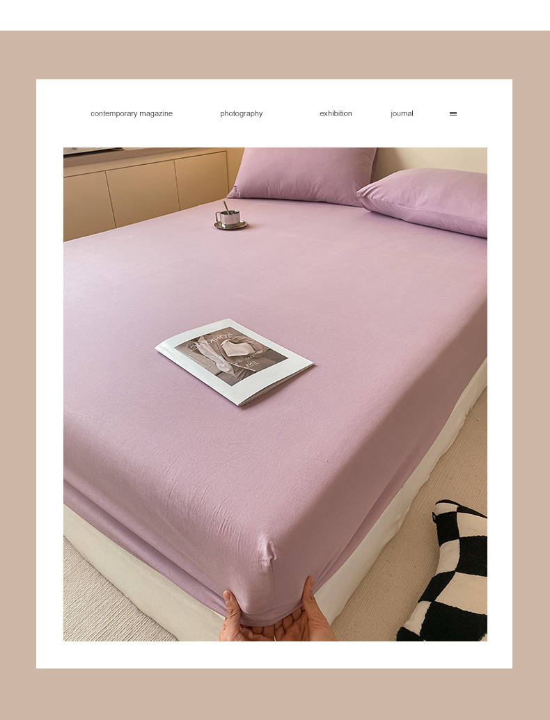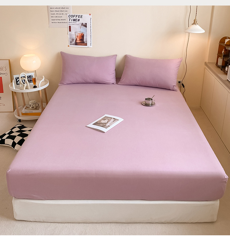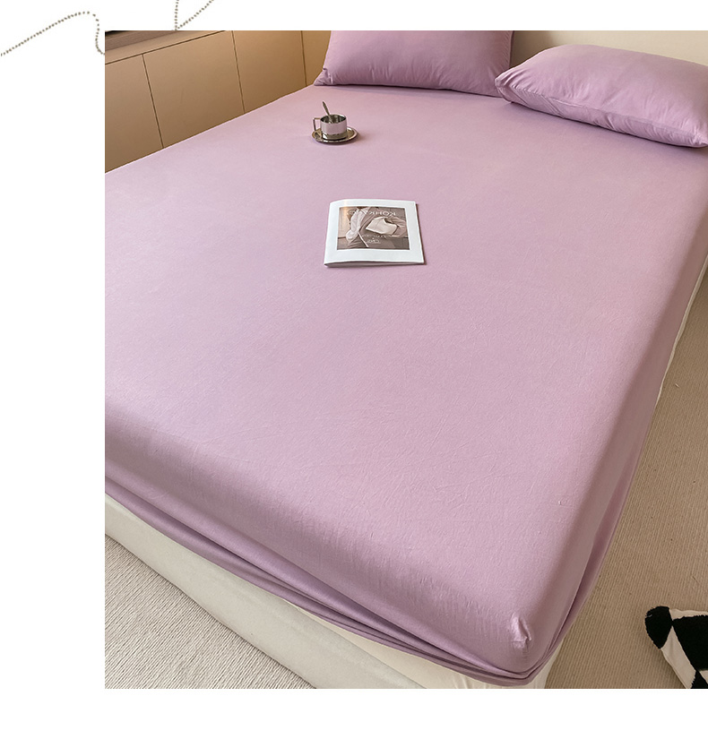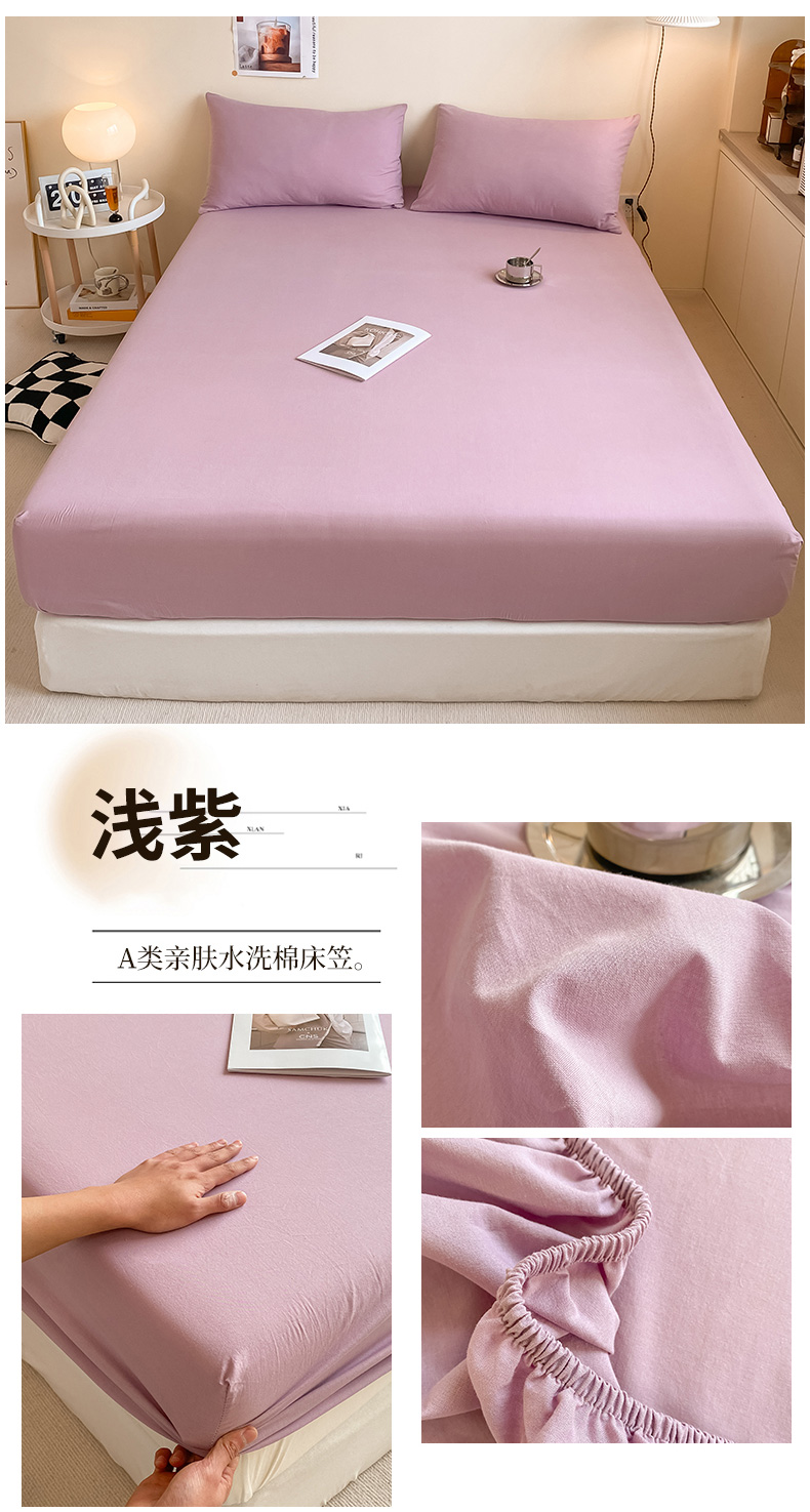 眠帛家居 2024新款A类亲肤水洗棉纯色单品床笠三件套 浅紫