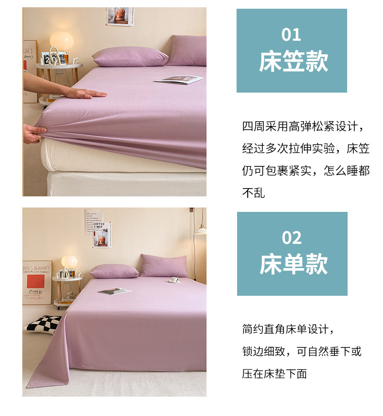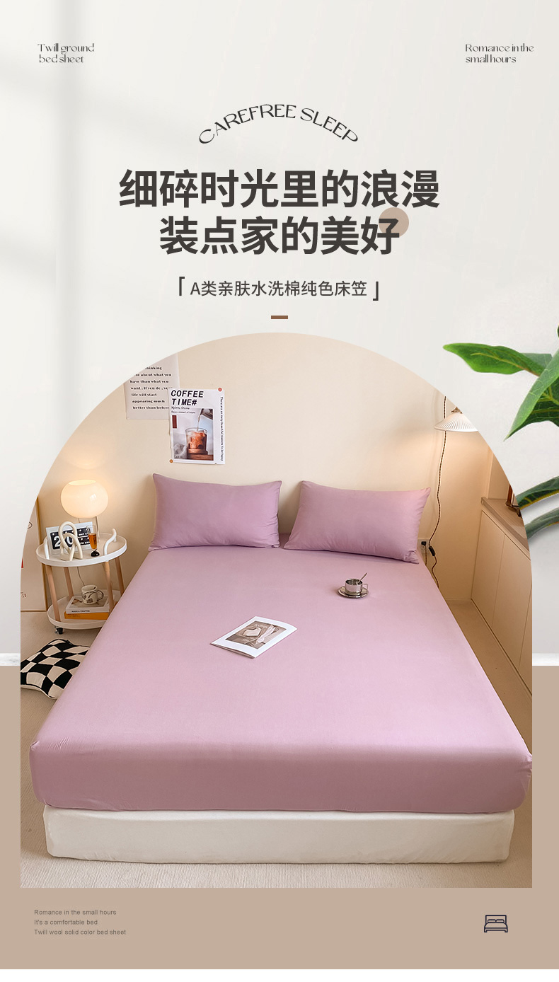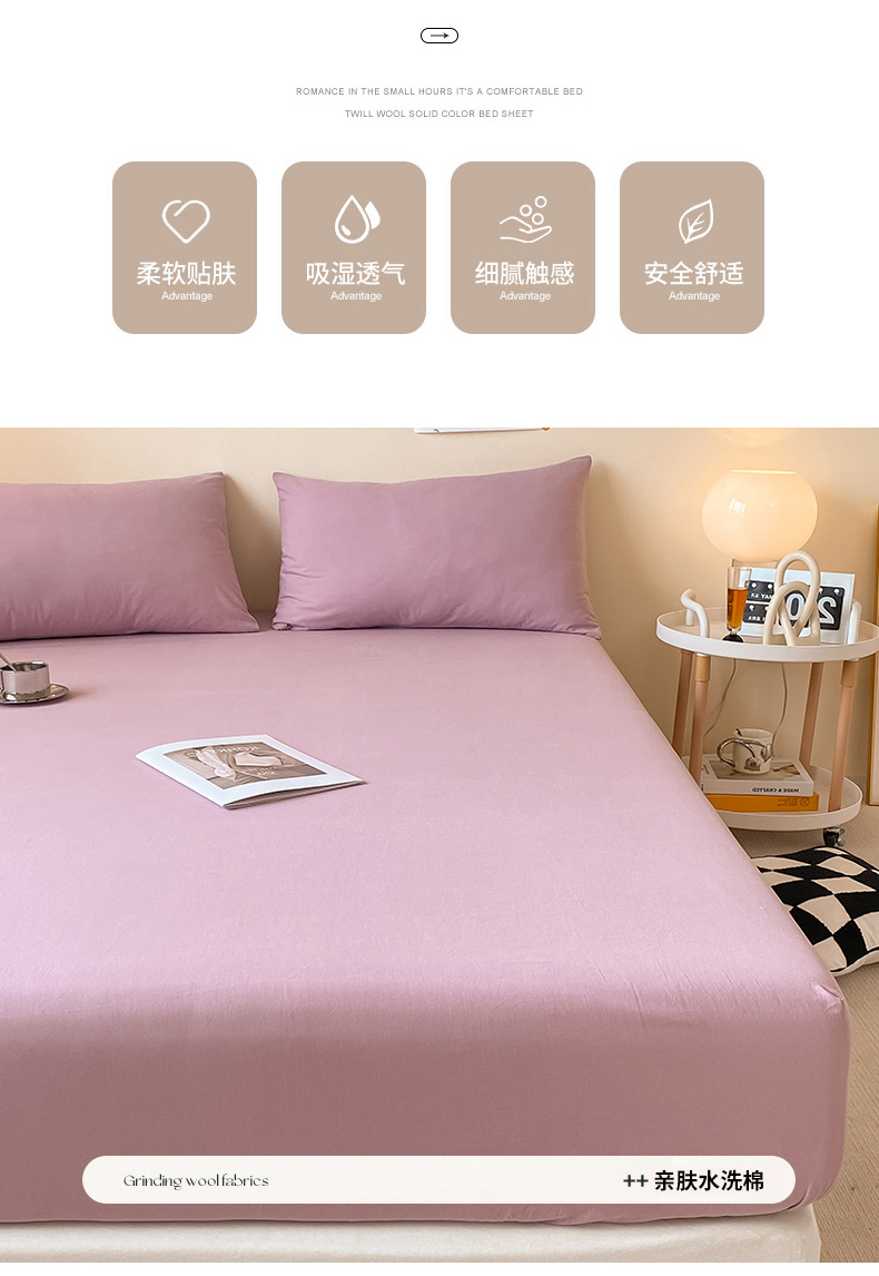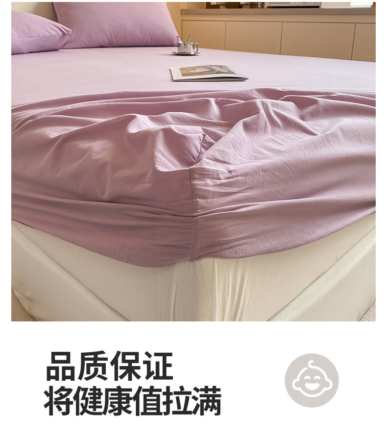 • 91家纺网 家纺一手货源 找家纺 眠帛家居 2024新款A类亲肤水洗棉纯色单品床笠三件套 浅紫