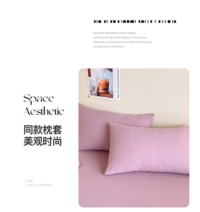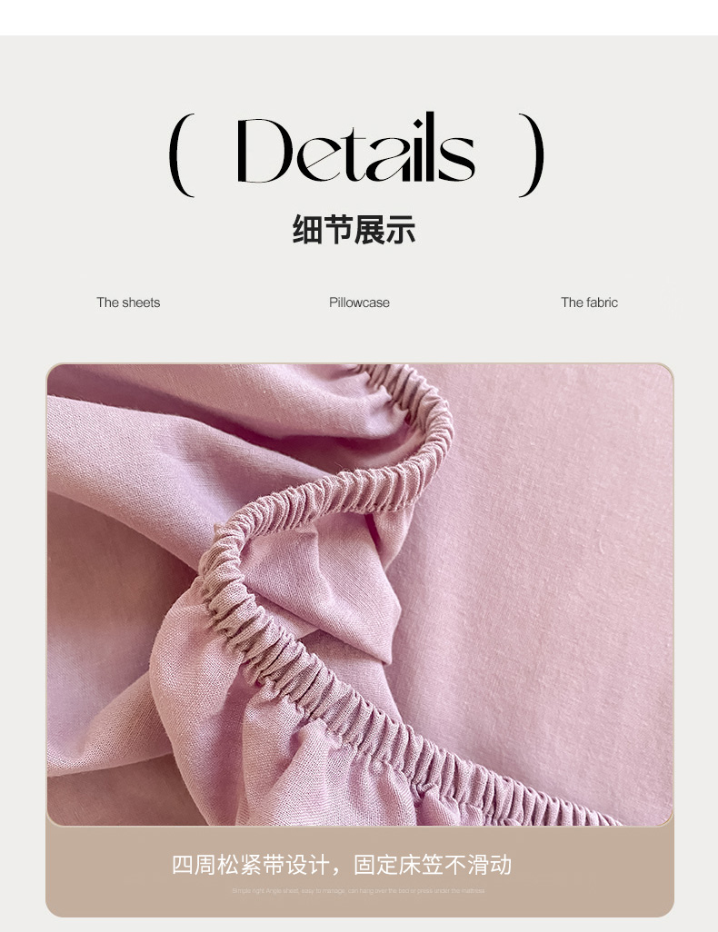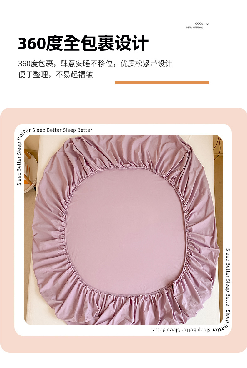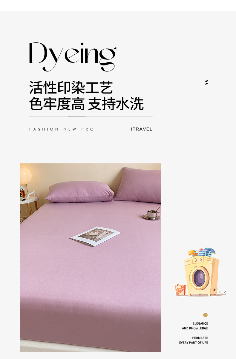 • 91家纺网 家纺一手货源 找家纺 眠帛家居 2024新款A类亲肤水洗棉纯色单品床笠三件套 浅紫
