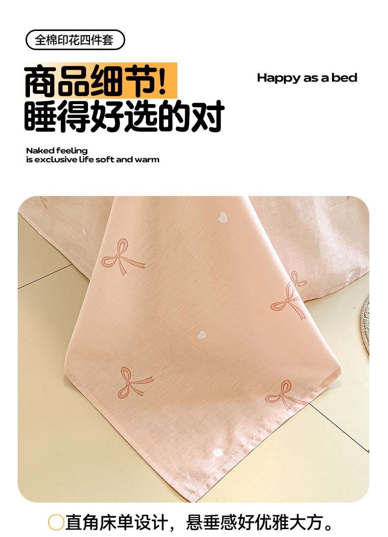 商品名称:本制 2024秋冬新款12868全棉印花四件套 恬淡-粉