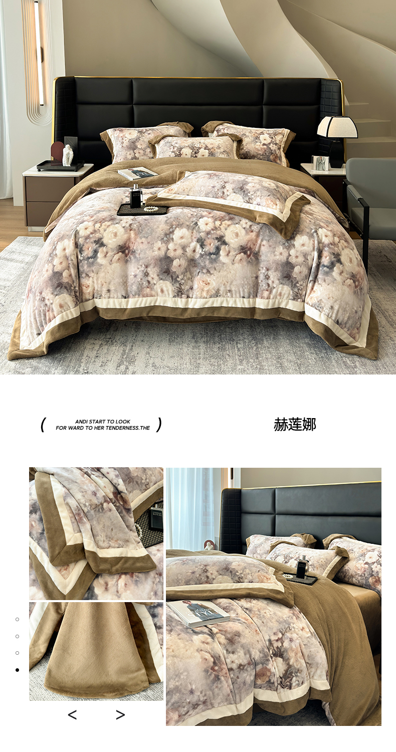 (总)凡客家居 2024新款高克重牛奶绒数码印花双拼角四件套,艾瑞尔,奥罗拉,赫莲娜,罗莉纱,玫瑰情缘,迷雾森林,温斯顿