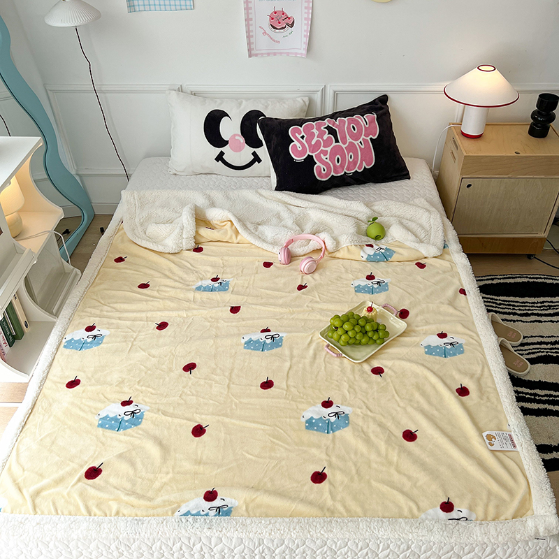 商品名称:昔可家纺 2024新款羊羔绒牛奶绒毛毯系列(三)-场景二-ins风系列 樱桃冰可乐