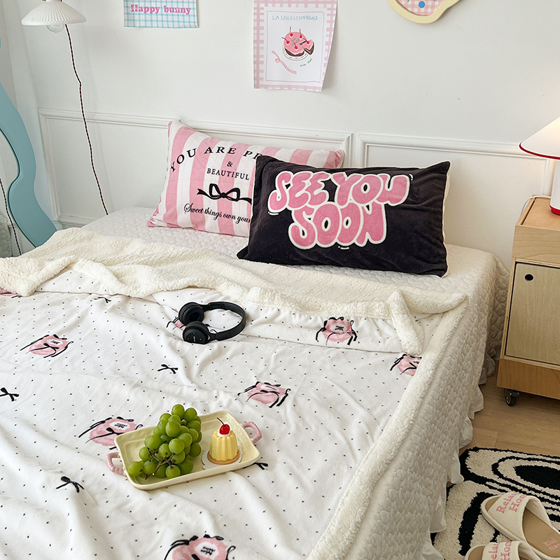 昔可家纺 2024新款羊羔绒牛奶绒毛毯系列(三)-场景二-ins风系列 樱桃冰可乐