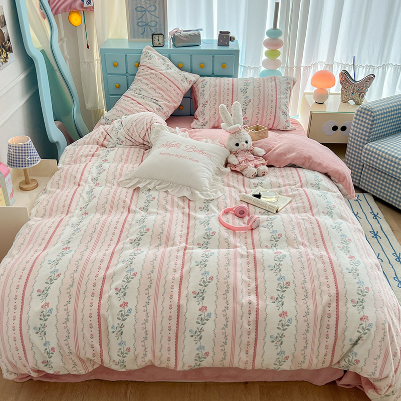 (总)昔可家纺 2024新款印花牛奶绒四件套系列-洛丽塔风,萝莉小兔,小熊烘焙屋,小熊玩偶屋