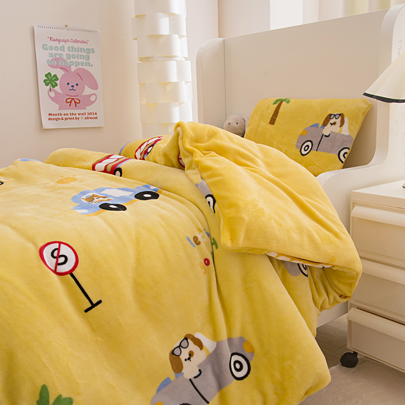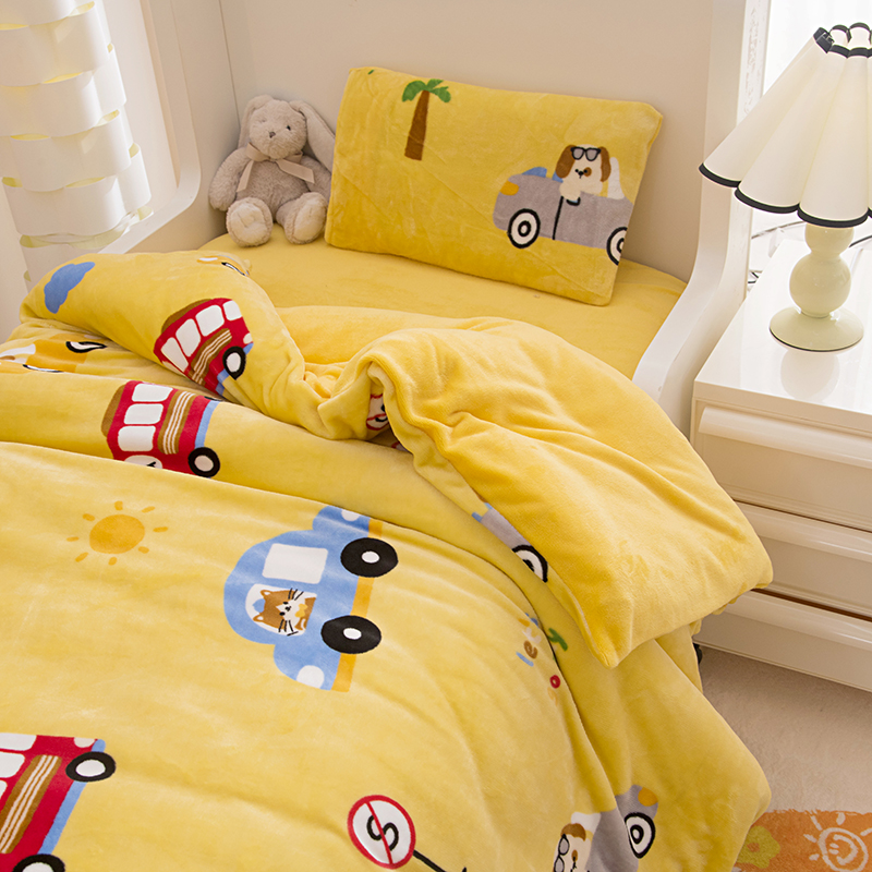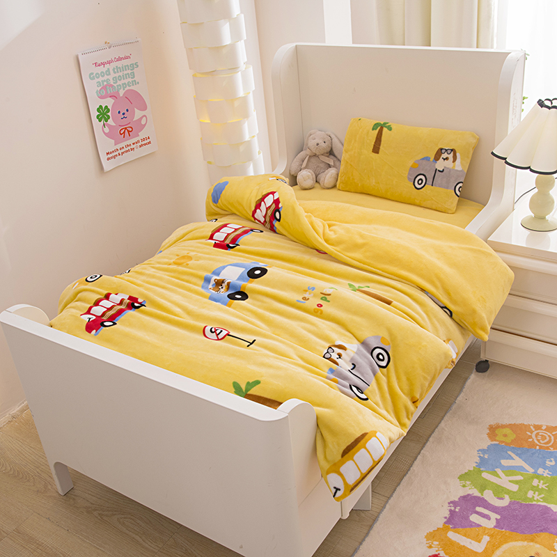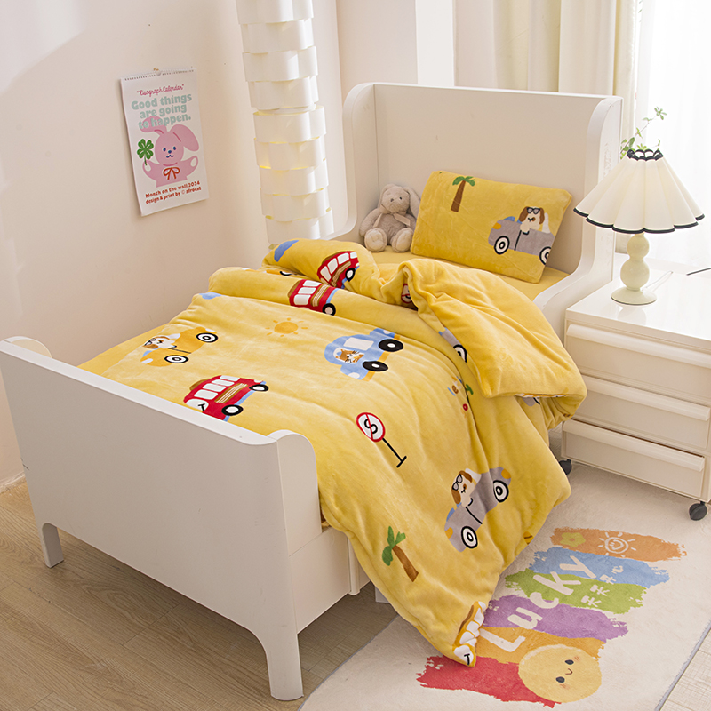 当前位置: 91家纺网 > 商品网购 > 床品套件 > 多件套 > 多件套 > 萌宝 2024新款幼儿园牛奶绒三件套儿童珊瑚绒被套 汽车-黄