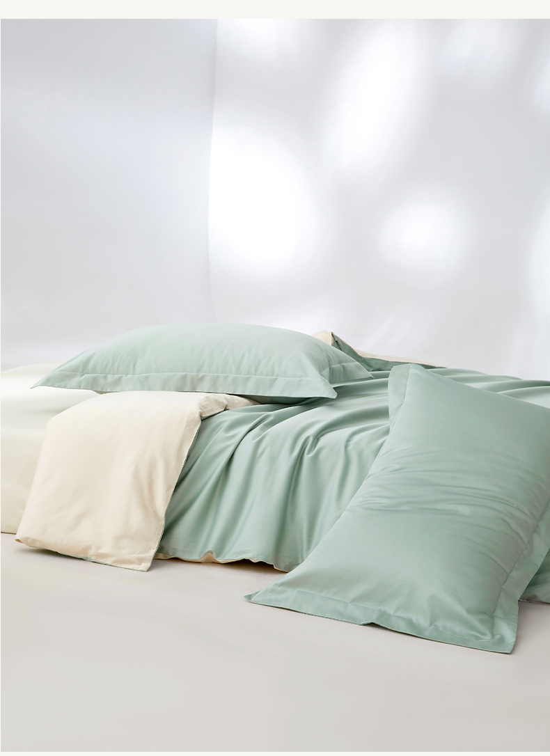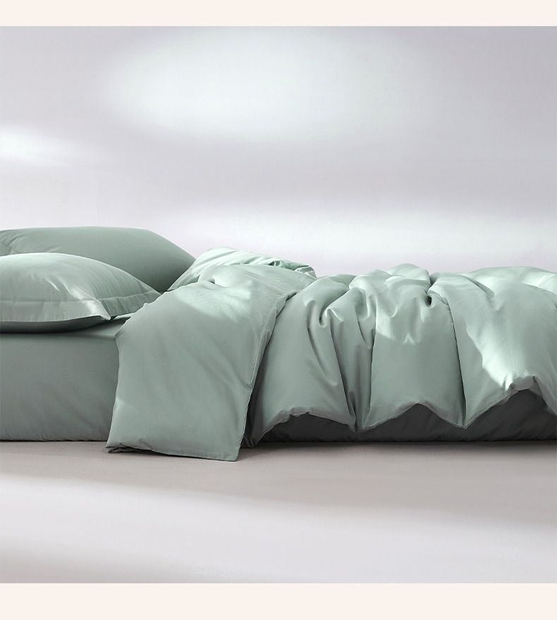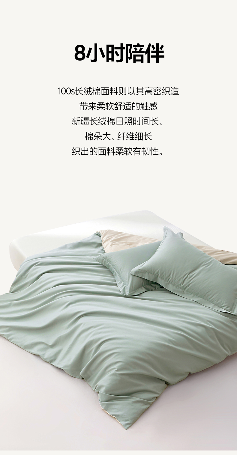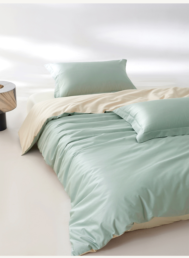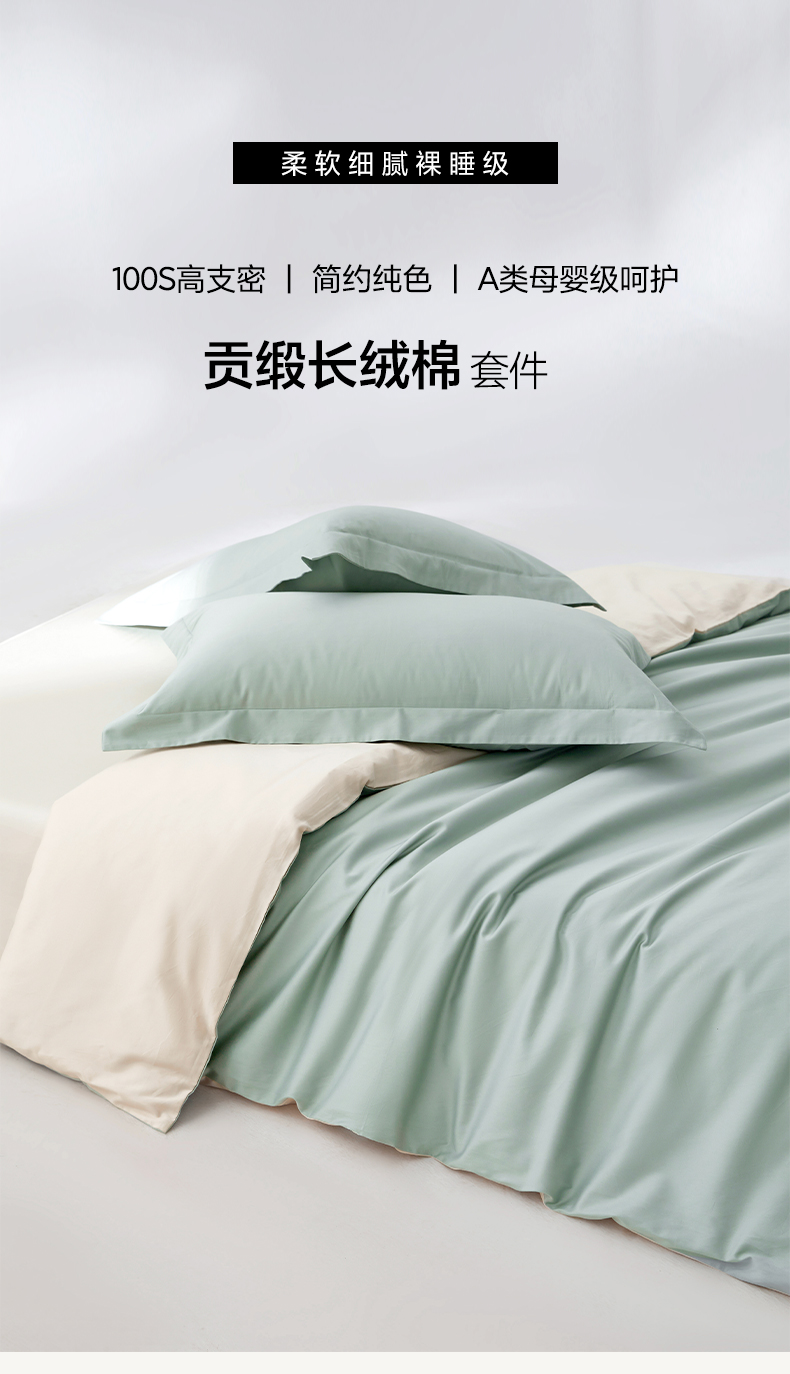 当前位置: 91家纺网 > 商品网购 > 床品套件 > 四件套 > 长绒棉四件套 > 轩和家居 2024新款A类50S贡缎长绒棉四件套系列 薄荷绿+浅香槟