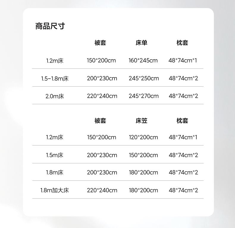 1.8m床笠款被套加大四件套 | ¥190.00 |