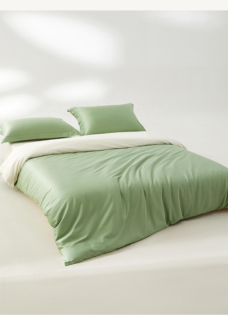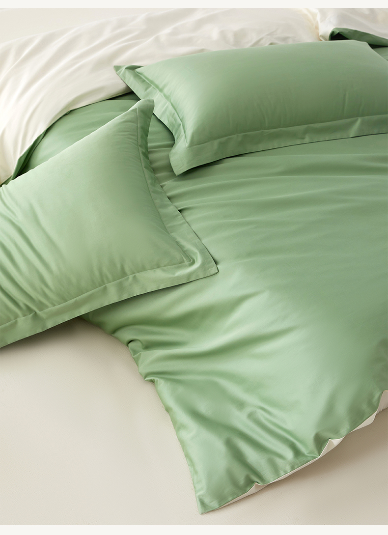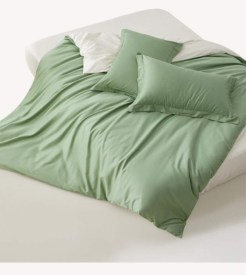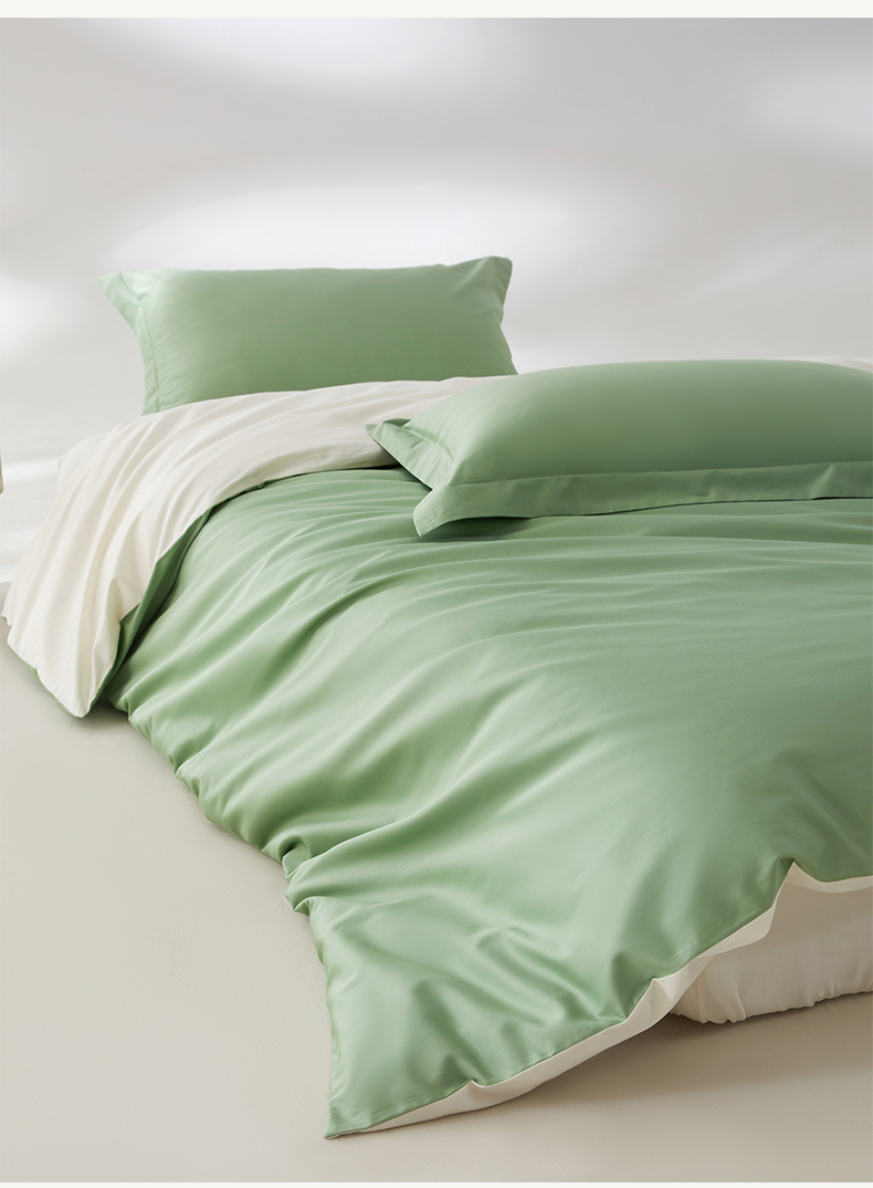 • 91家纺网 家纺一手货源 找家纺 轩和家居 2024新款A类50S贡缎长绒棉单被套系列 抹茶绿+浅香槟