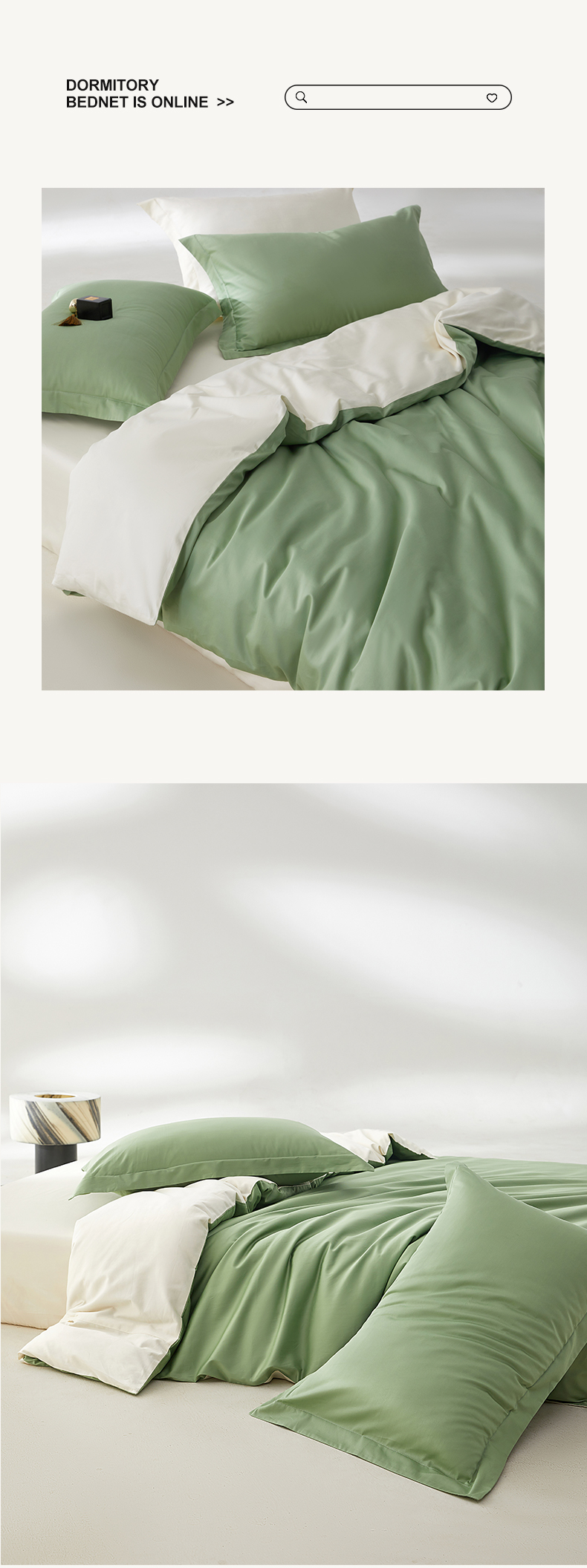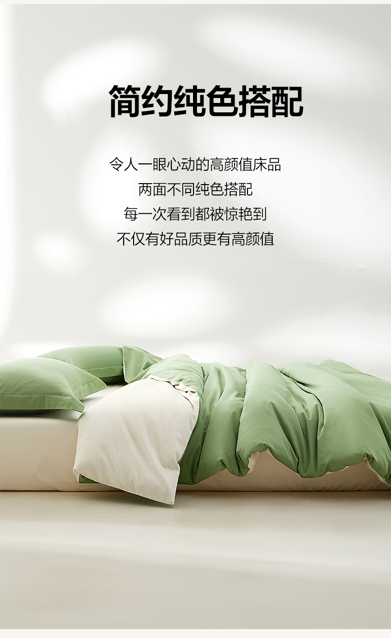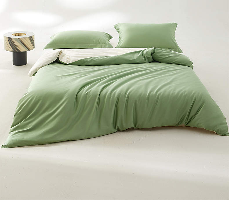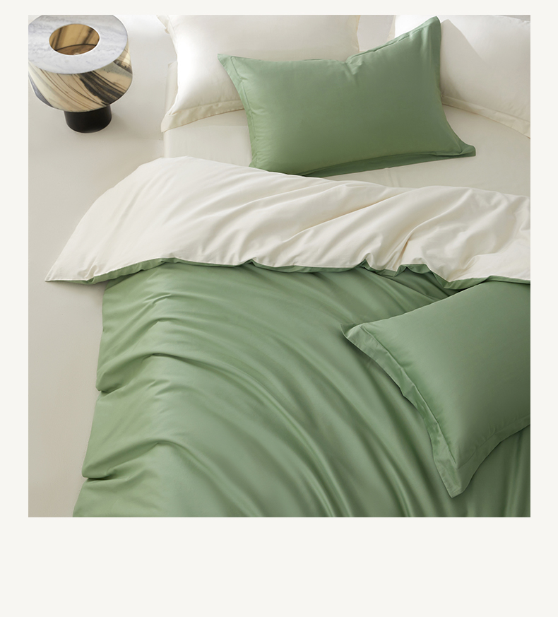 • 91家纺网 家纺一手货源 找家纺 轩和家居 2024新款A类50S贡缎长绒棉单被套系列 抹茶绿+浅香槟