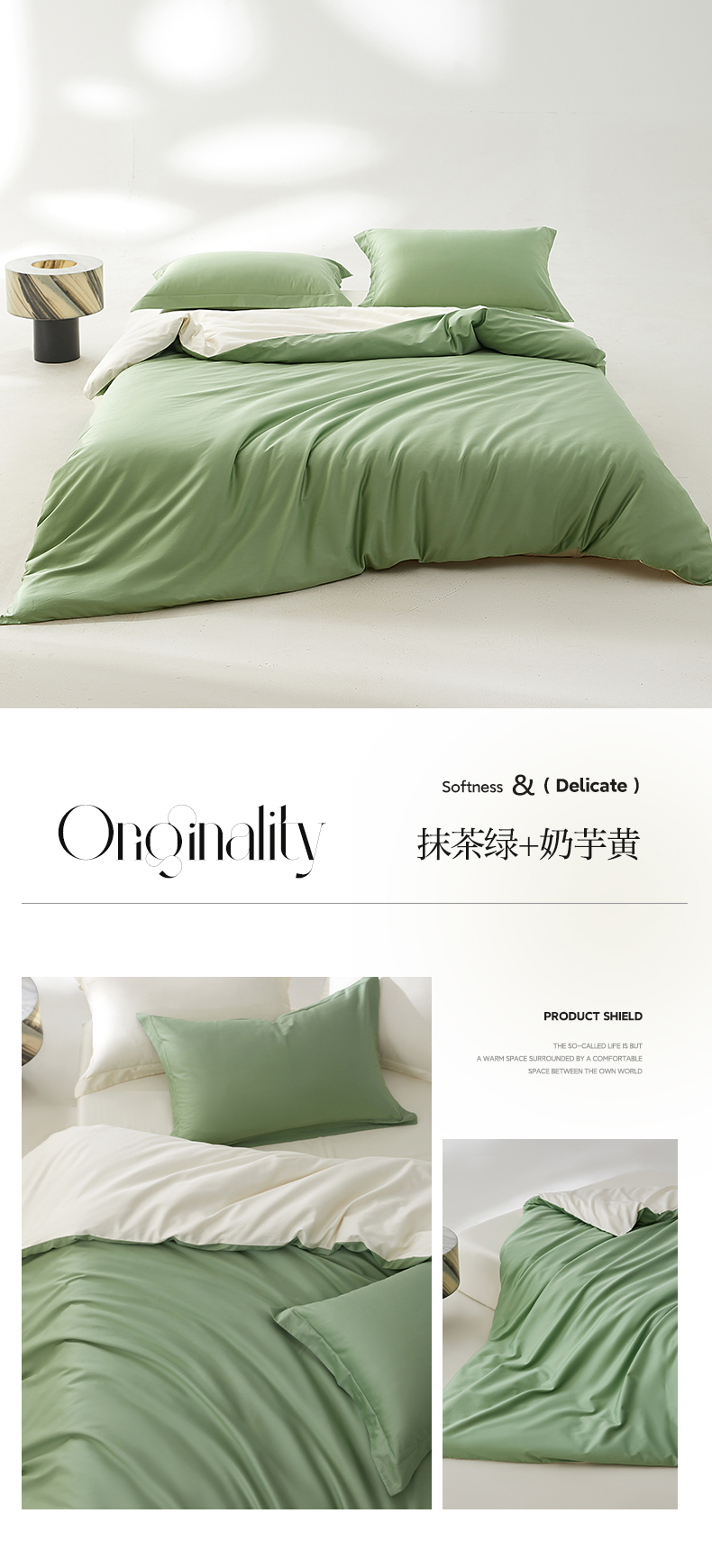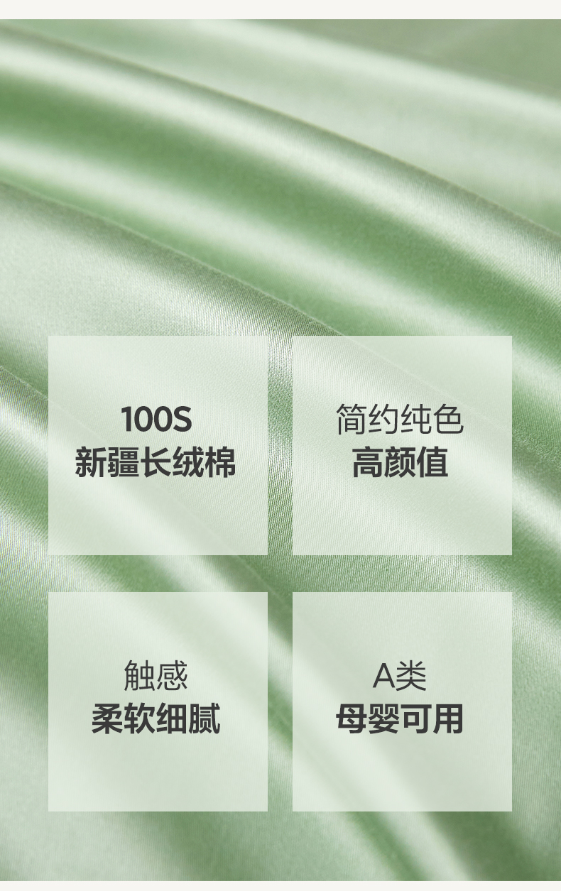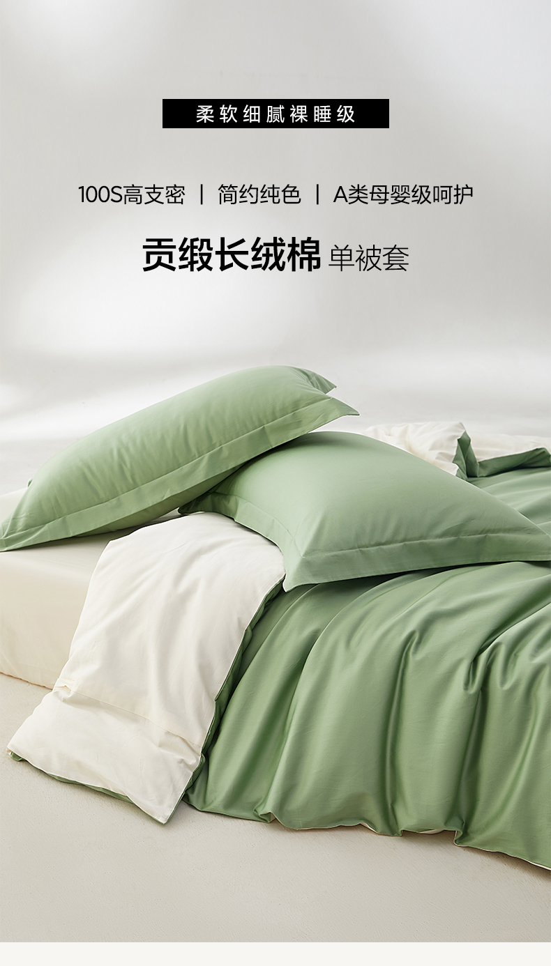 当前位置: 91家纺网 > 商品网购 > 床上用品 > 被套 > 轩和家居 2024新款A类50S贡缎长绒棉单被套系列 抹茶绿+浅香槟