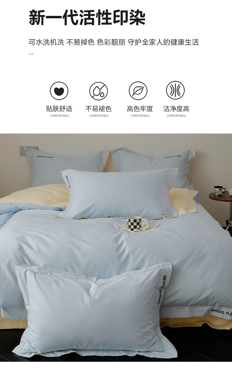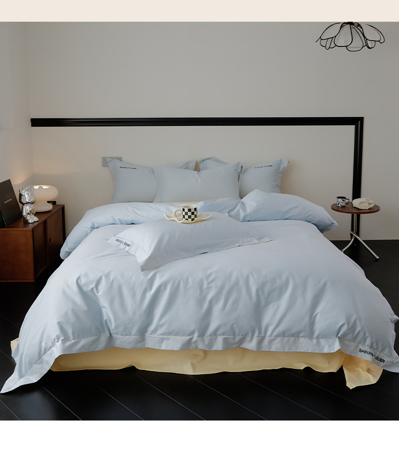当前位置: 91家纺网 > 商品网购 > 床品套件 > 四件套 > 全棉普通四件套 > EH家居 2024新款见山系列全棉简绣双拼四件套 见山-山栀蓝