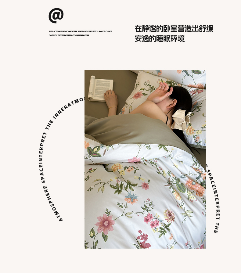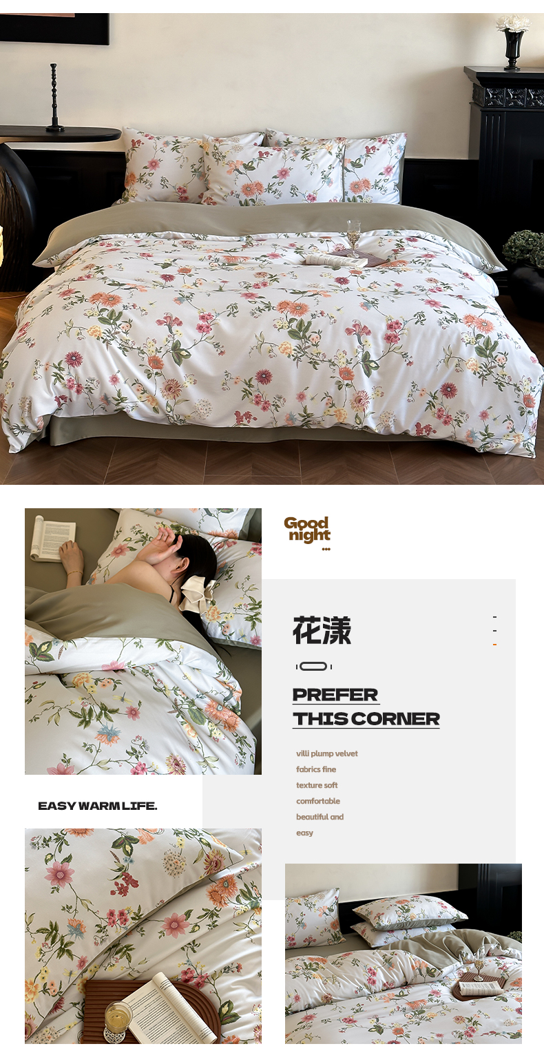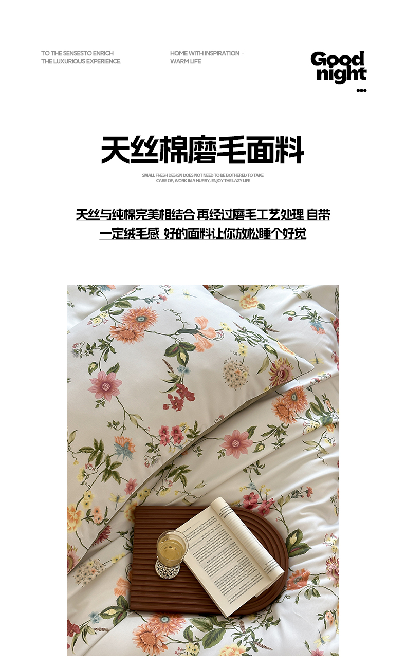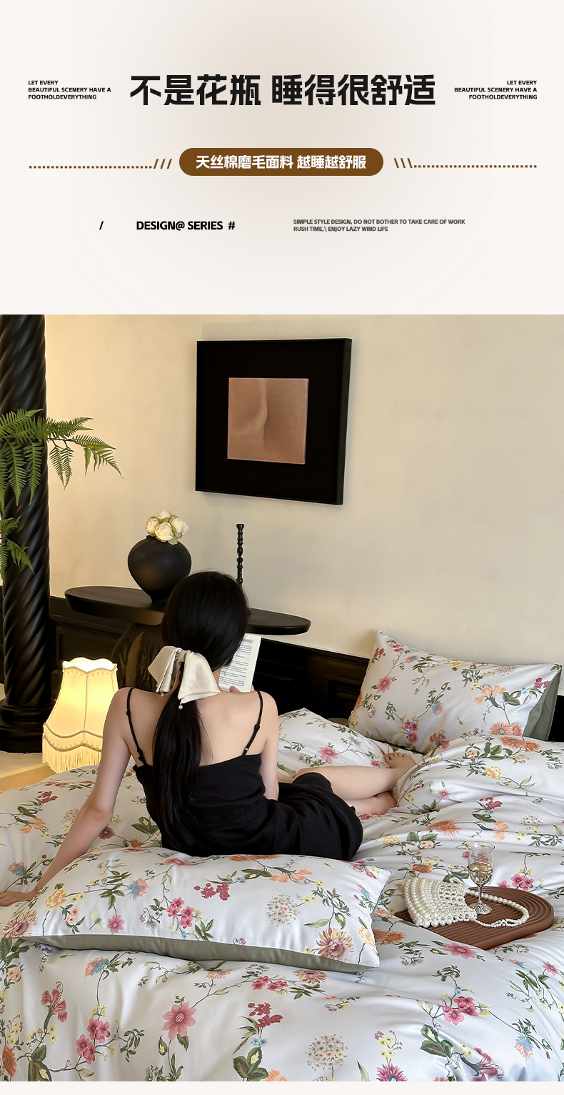 三味舒屋 2024新款云柔花艺天丝棉磨毛四件套 花漾
