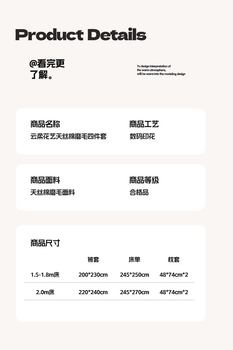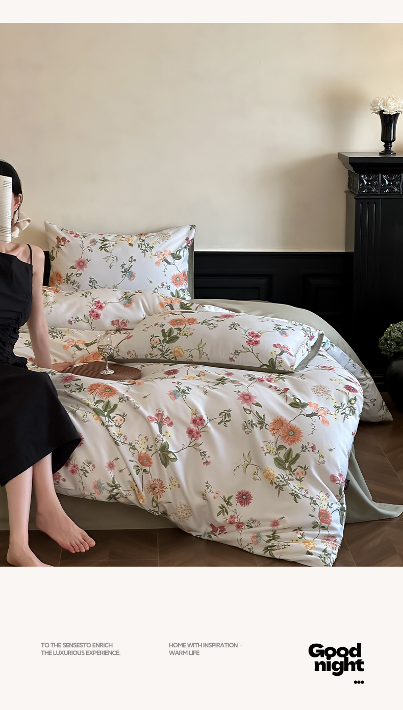 商品名称:三味舒屋 2024新款云柔花艺天丝棉磨毛四件套 花漾
