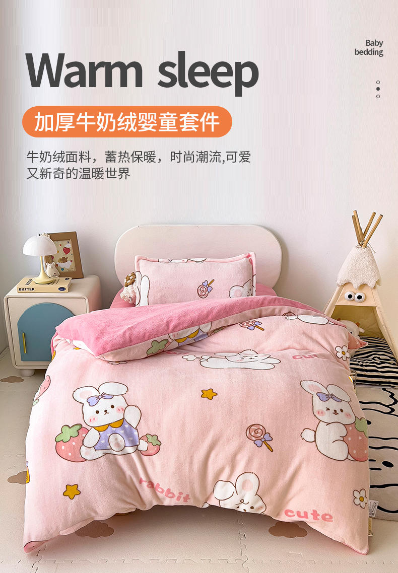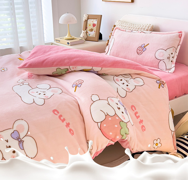 当前位置: 91家纺网 > 商品网购 > 床品套件 > 四件套 > 牛奶绒四件套 > 吉咪兔 2025新款儿童卡通牛奶绒双面绒幼儿园被子三件套六件套保暖被褥被套草莓兔子