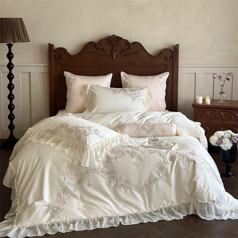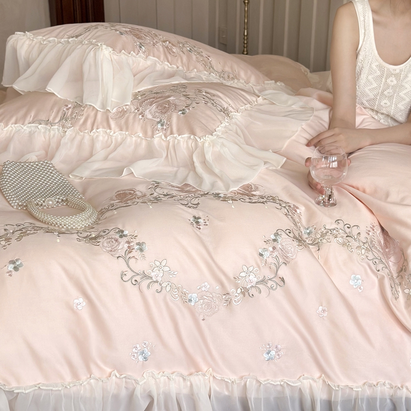 (总)MIU缪家居 2025新款100支全棉四件套-洛丽塔,洛丽塔-白,洛丽塔-粉,洛丽塔-红