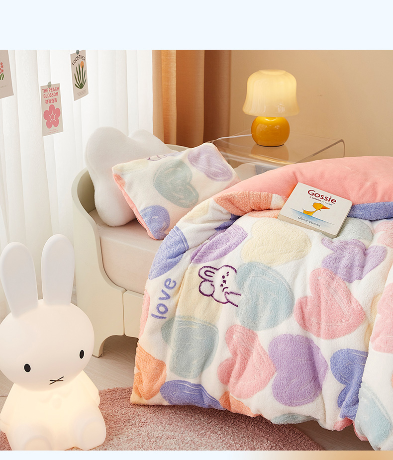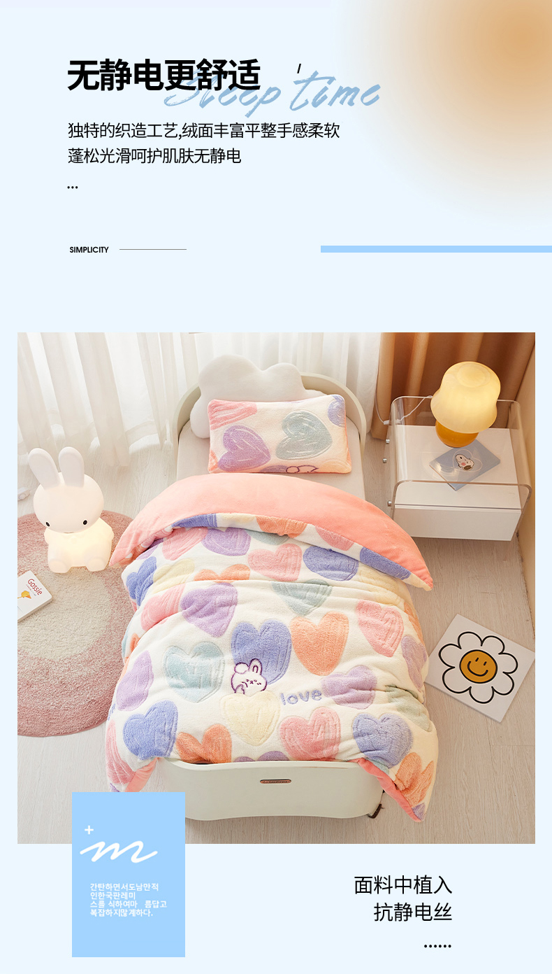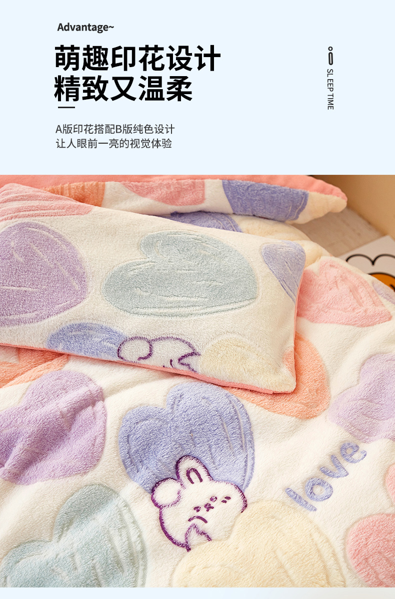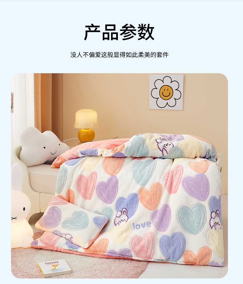商品名称:丝涟家居 2025新款A类雪花绒牛奶绒儿童多功能可拆卸盖毯被 爱心兔
