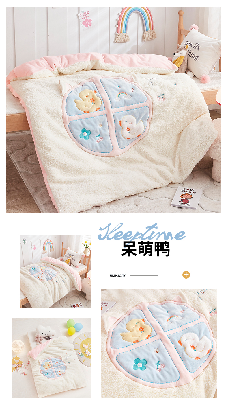 丝涟家居 2025新款羊羔绒牛奶绒卡通刺绣儿童脱卸被子 呆萌鸭
