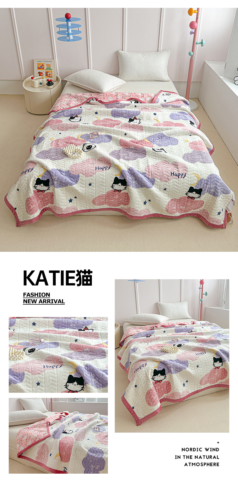 商品名称:源舜家纺 2025新款小清新印花牛奶绒床盖多用途盖毯系列 Katie猫
