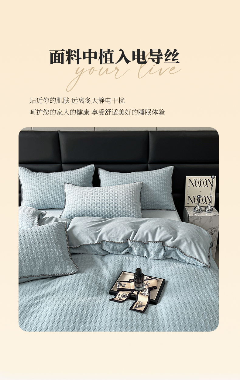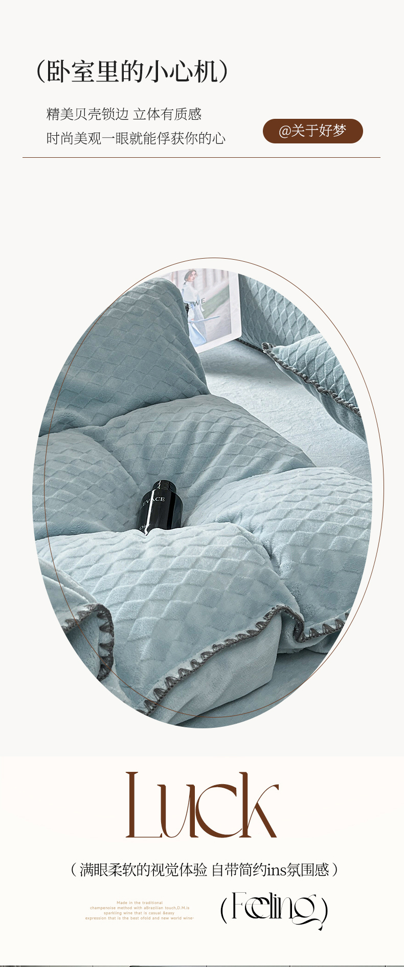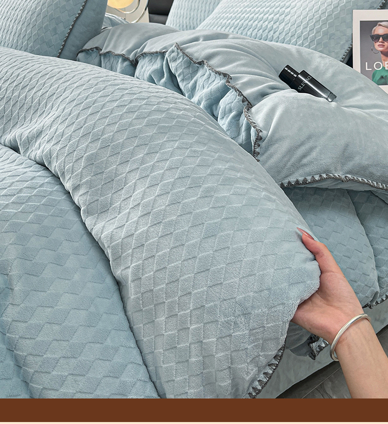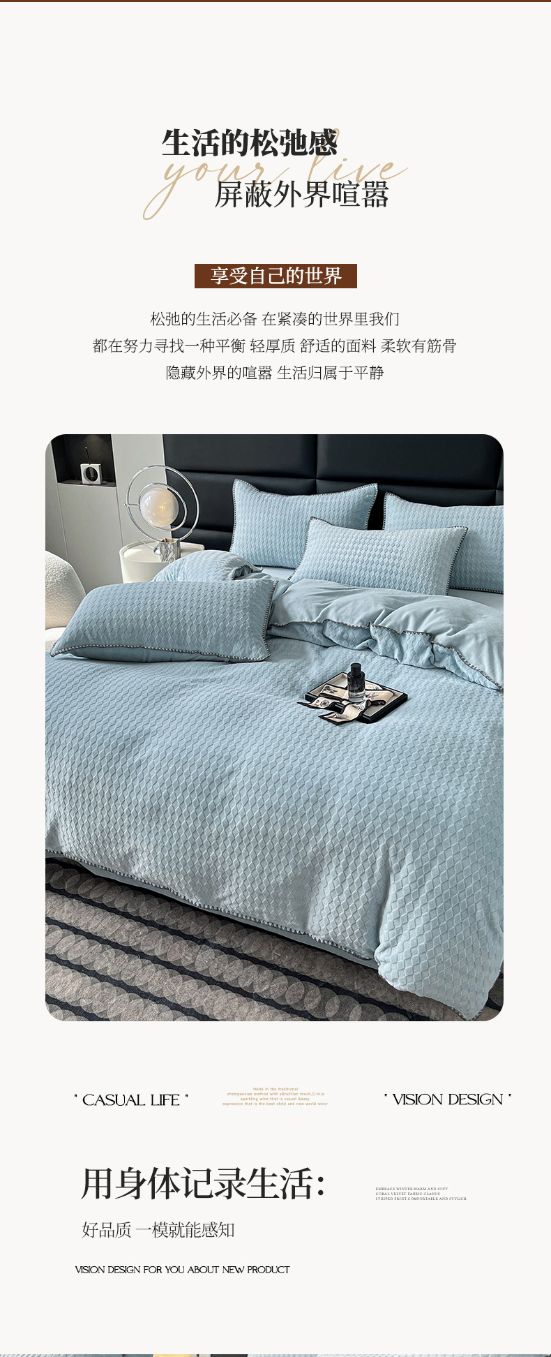 当前位置: 91家纺网 > 商品网购 > 床品套件 > 四件套 > 雕花绒四件套 > 菡宝 2024新款贝壳边无印风230g雕花绒床单四件套 菱形格-雾兰