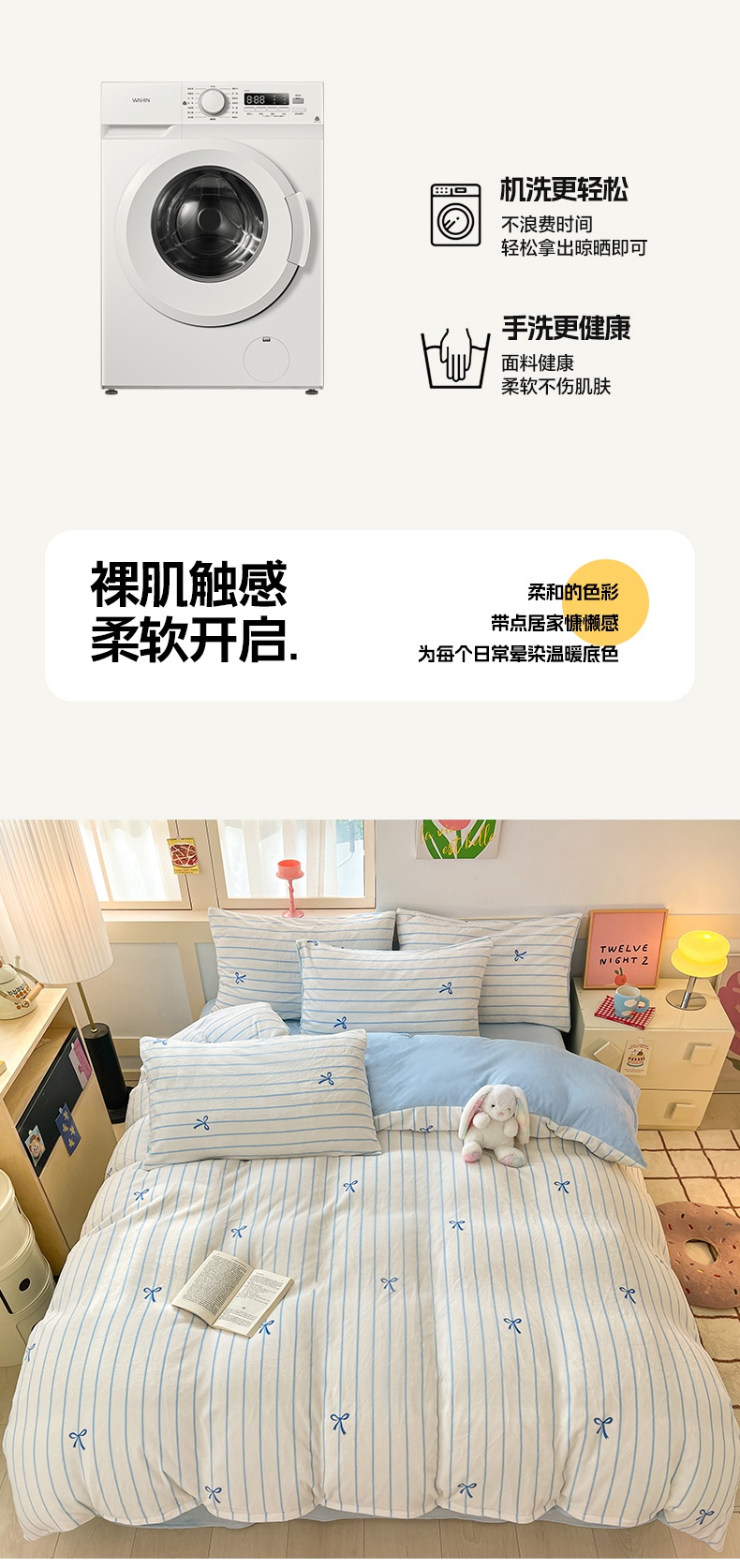 商品名称:寐眠 2024新款高克重印花牛奶绒四件套条纹风格一 婴儿蓝蝴蝶结