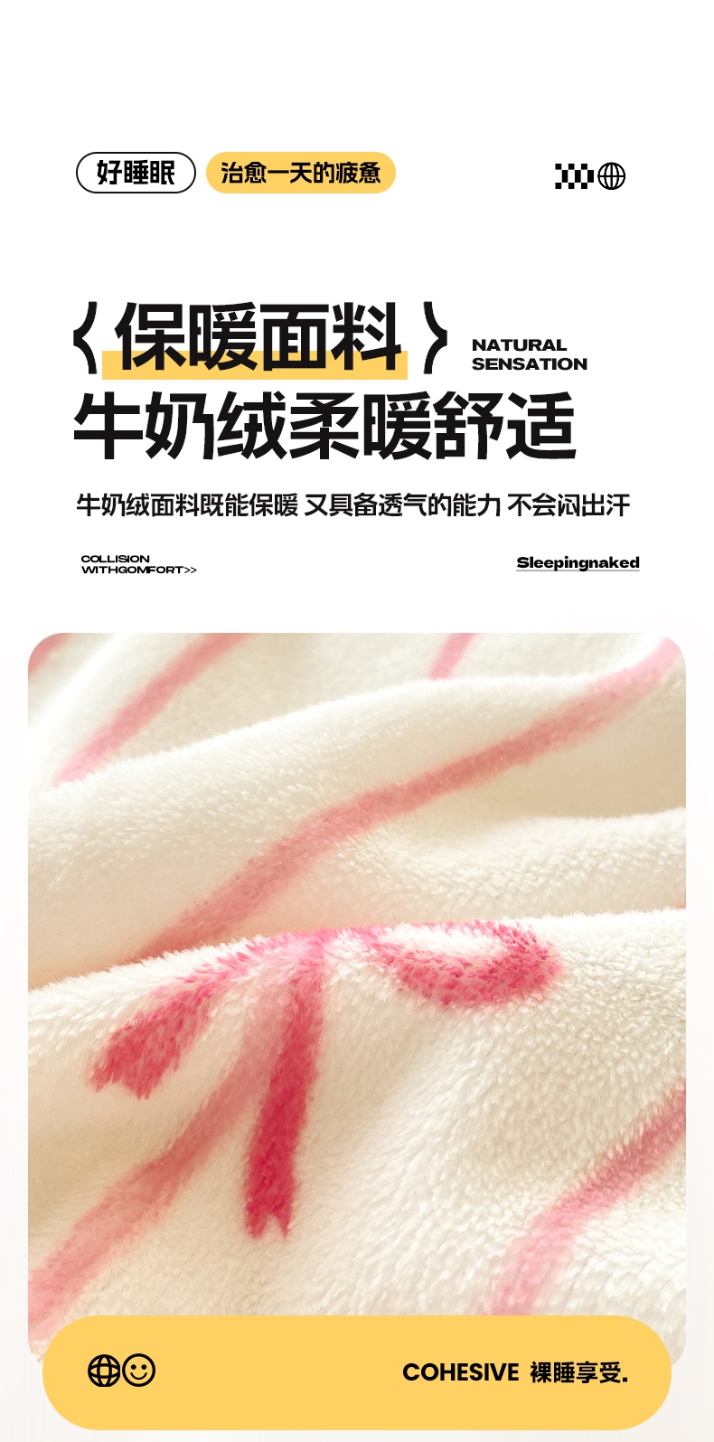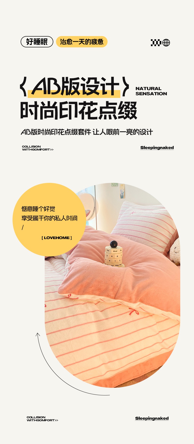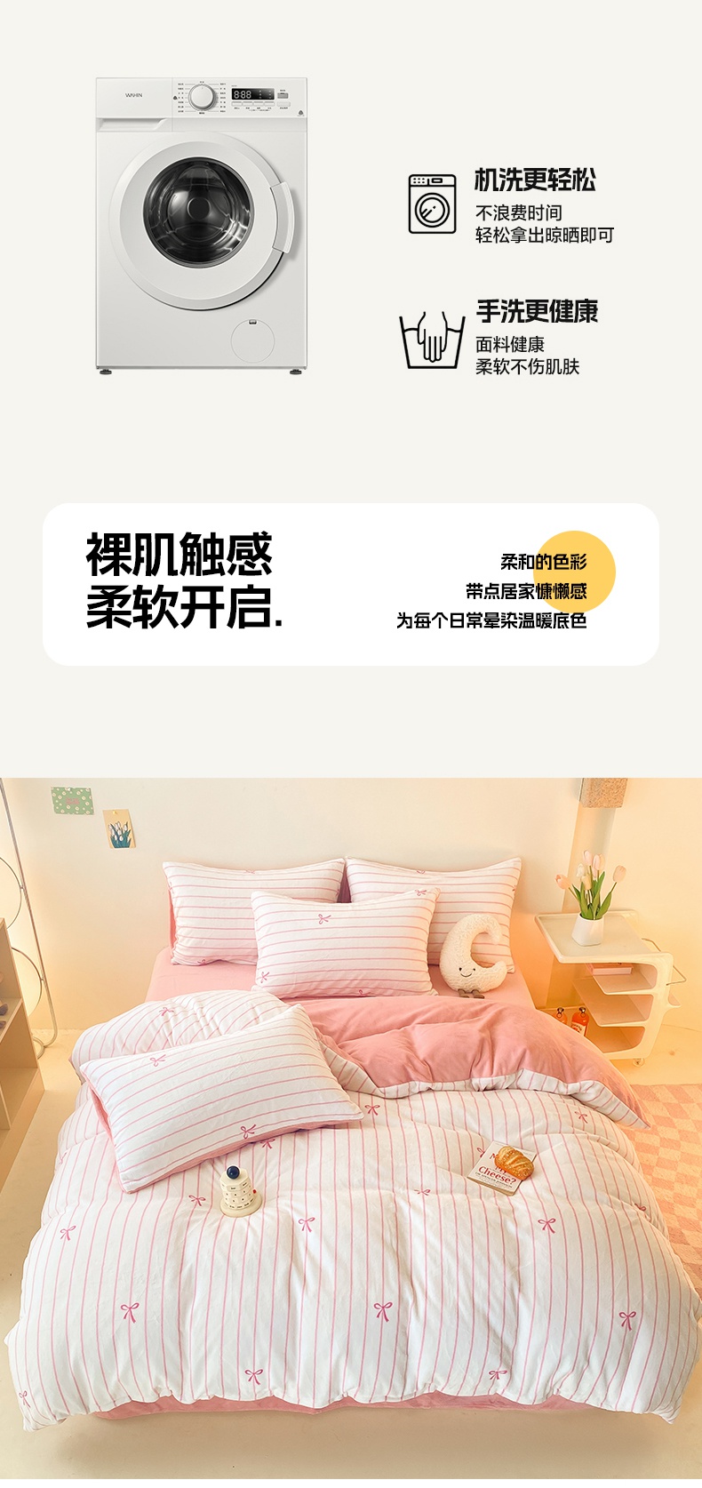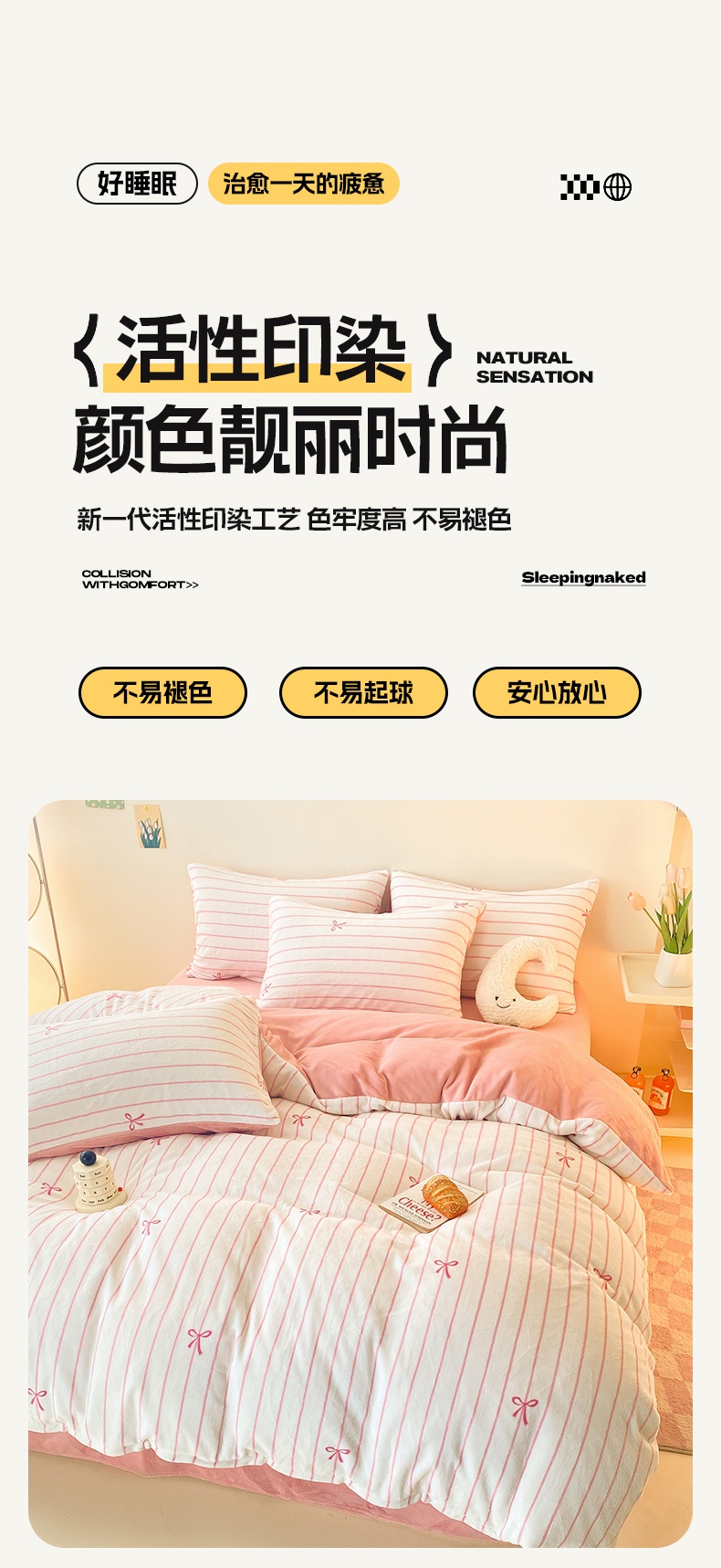 2024新款高克重印花牛奶绒四件套条纹风格二 蜜桃蝴蝶结