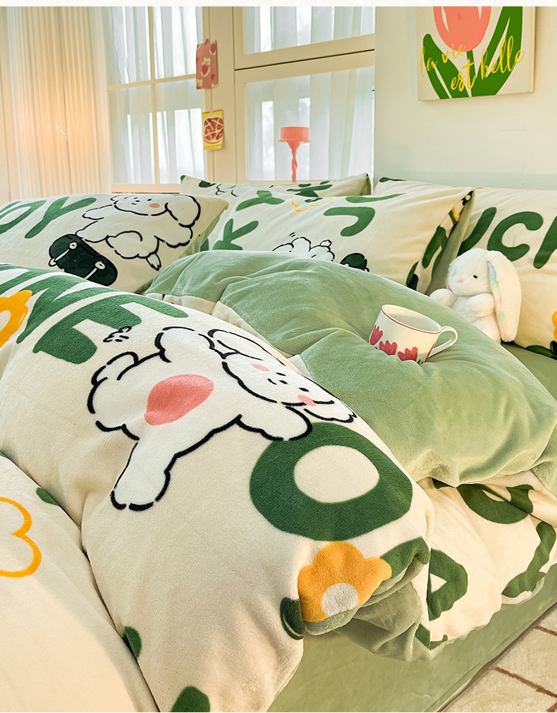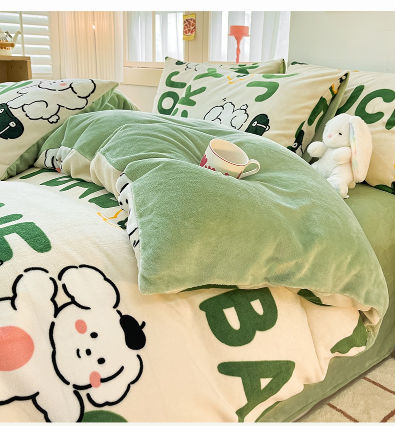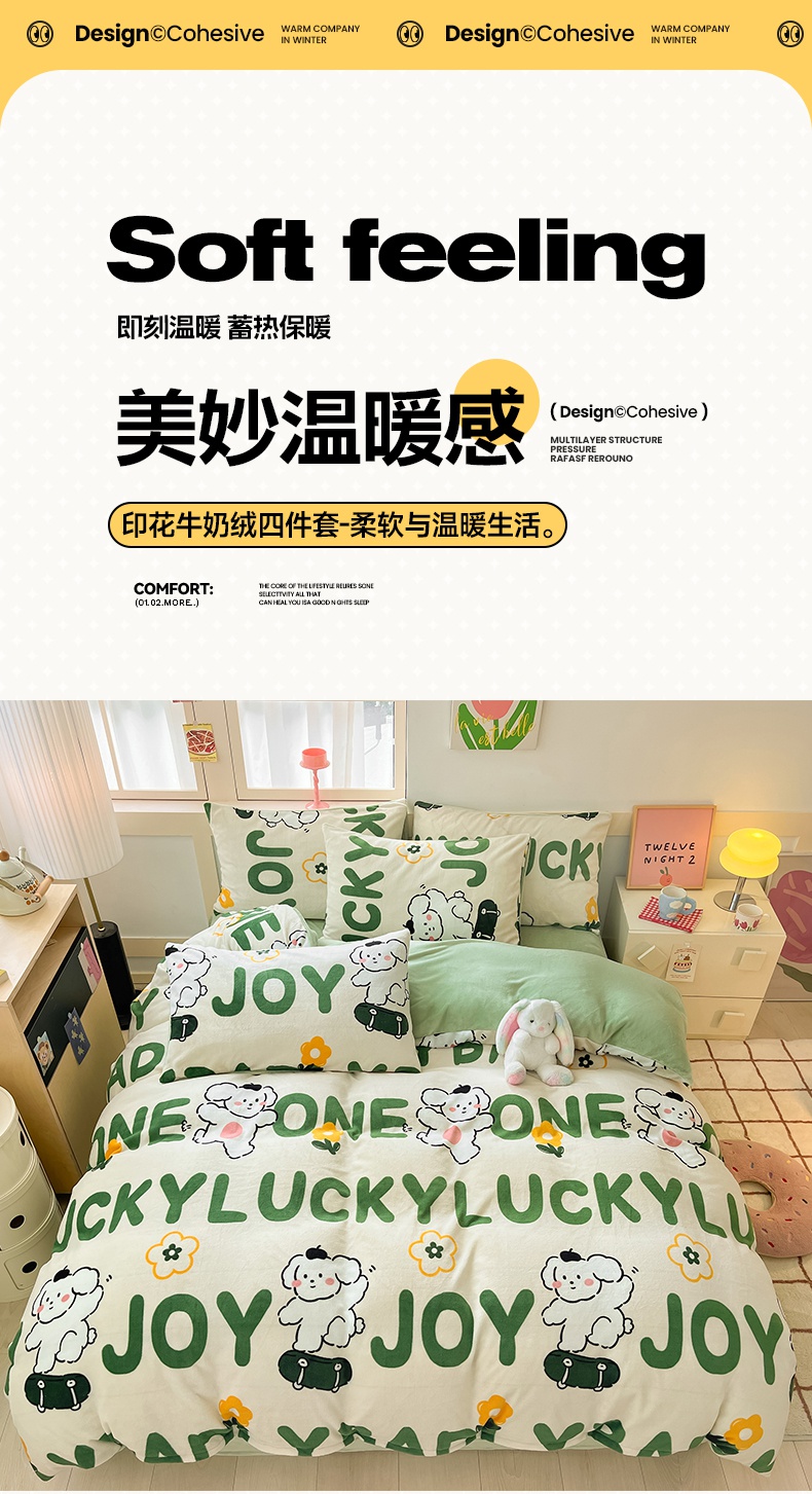 寐眠 2024新款高克重印花牛奶绒四件套风格一 咖啡猫