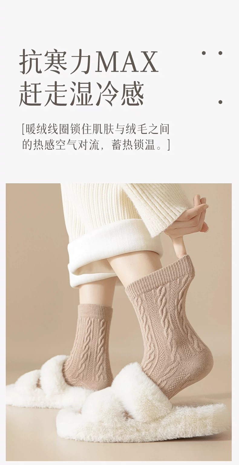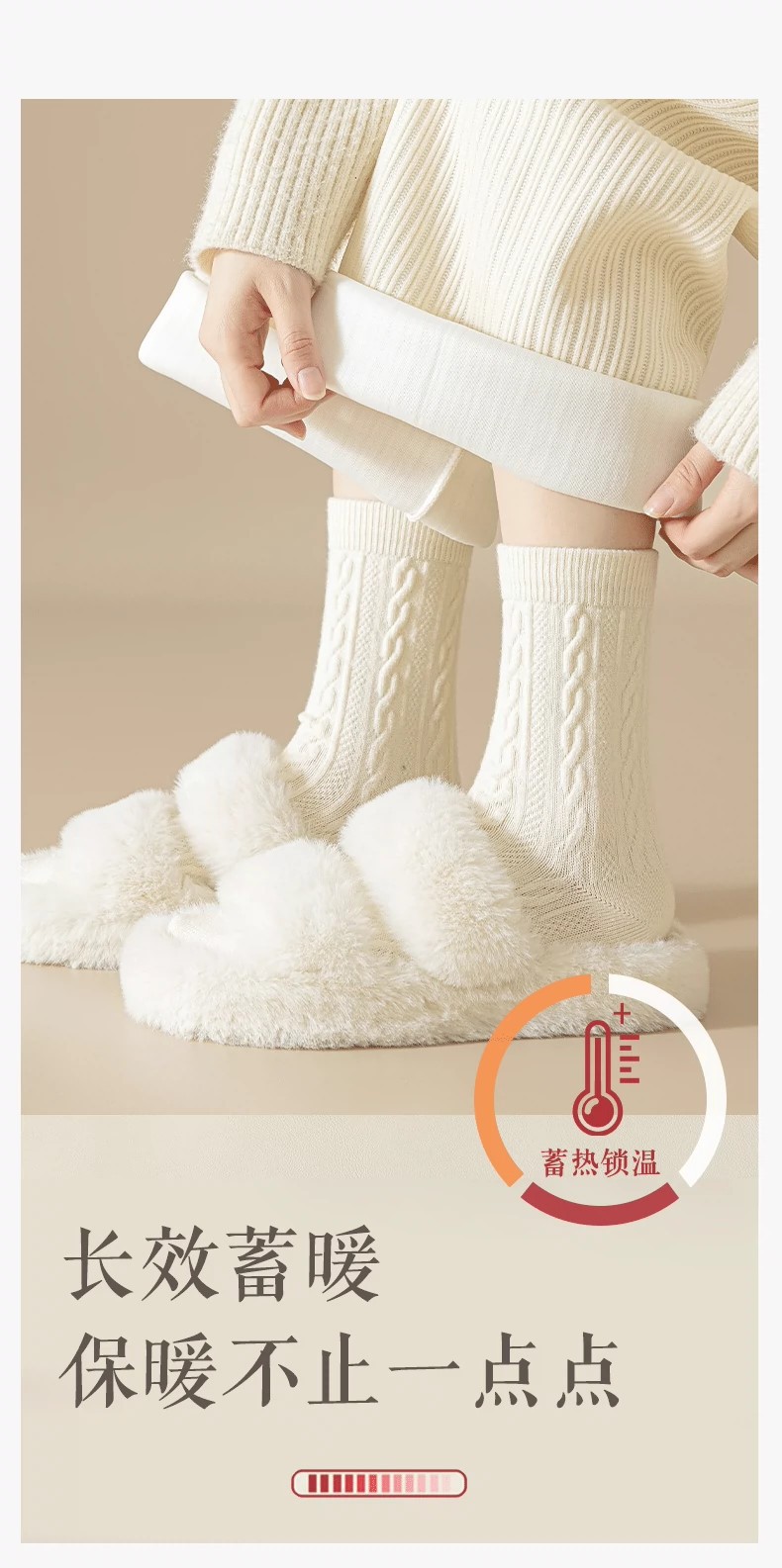良品汇馆 2024【女士麻花长袜】日式无印中筒袜子女秋冬良品纯色棉袜棉底袜女士无骨加厚麻花长袜 扭花-米色