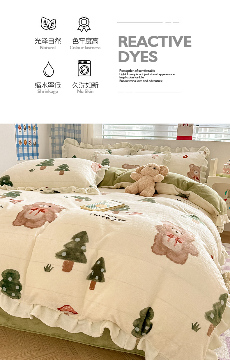 典曼家纺 2024新款A类韩版牛奶绒四件套 熊出没