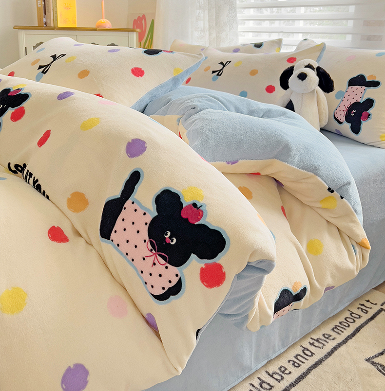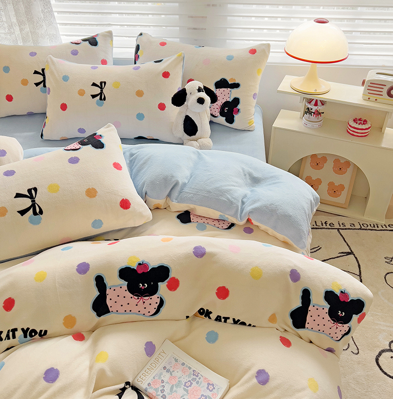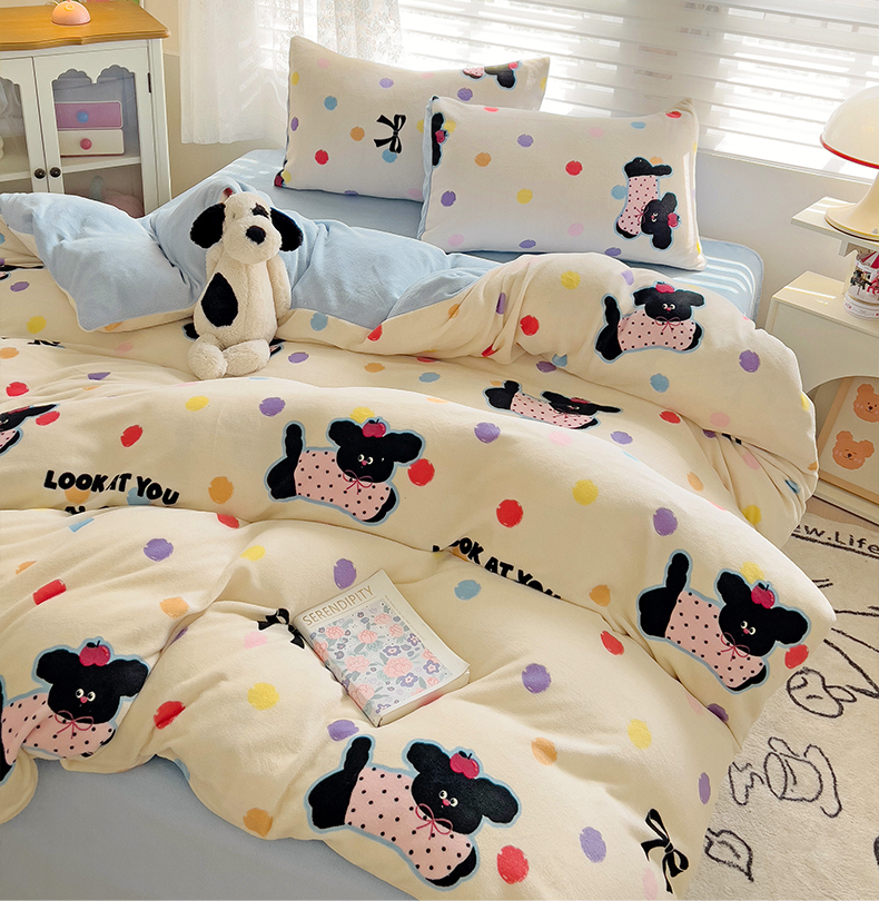 当前位置: 91家纺网 > 商品网购 > 床品套件 > 四件套 > 牛奶绒四件套 > 优选良品 2025新款小清新加厚高克重牛奶绒四件套直播热款电商热款汪汪仙贝