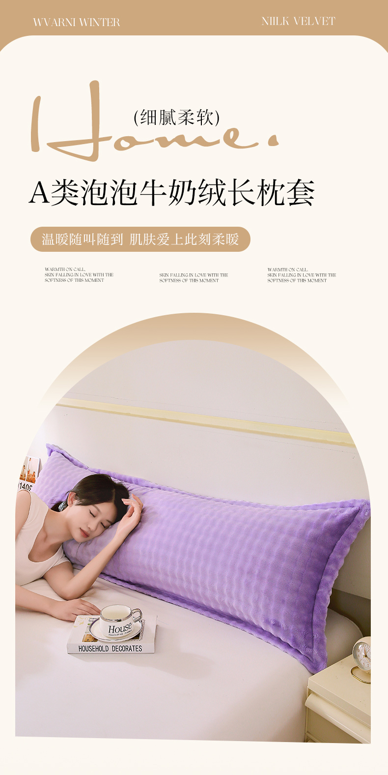 商品名称:芯宜佳 2024新款高克重泡泡牛奶绒长枕套 紫色