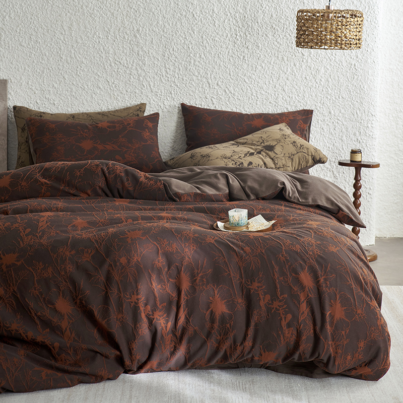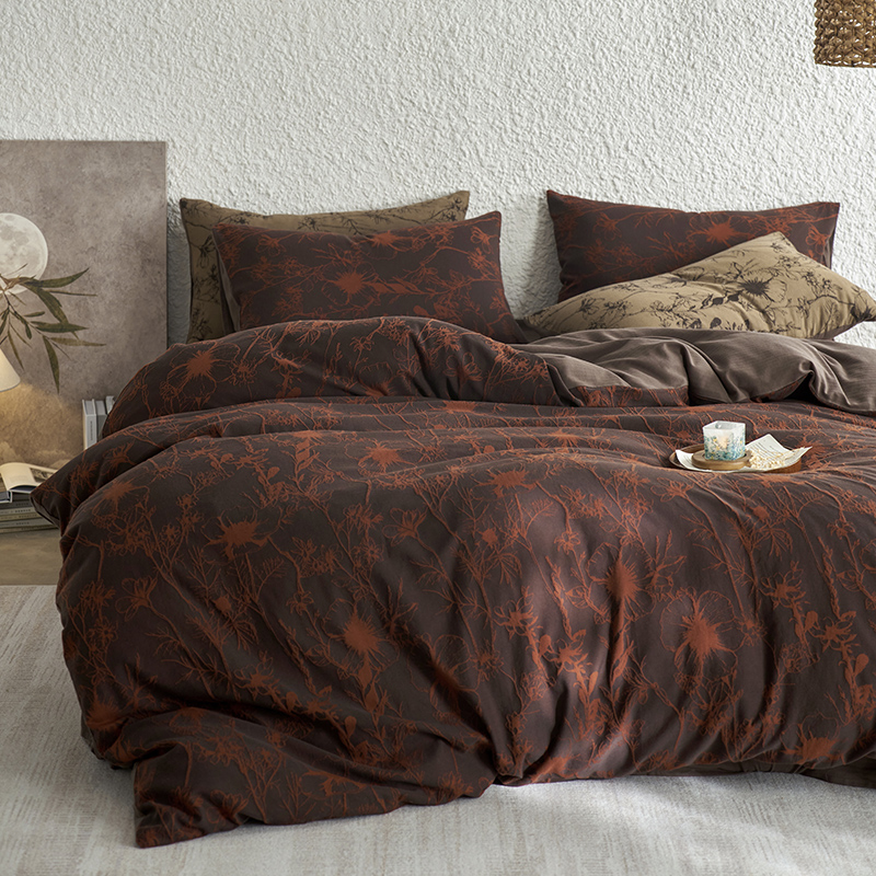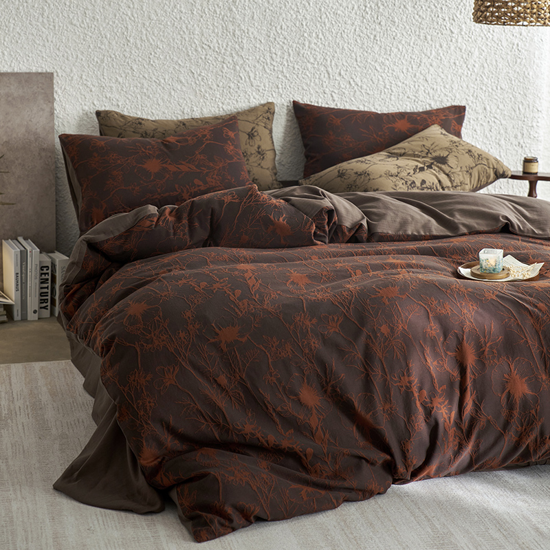 (总)简家居 2025新款20%亚麻80%棉棉麻提花四件套-常青藤,常青藤