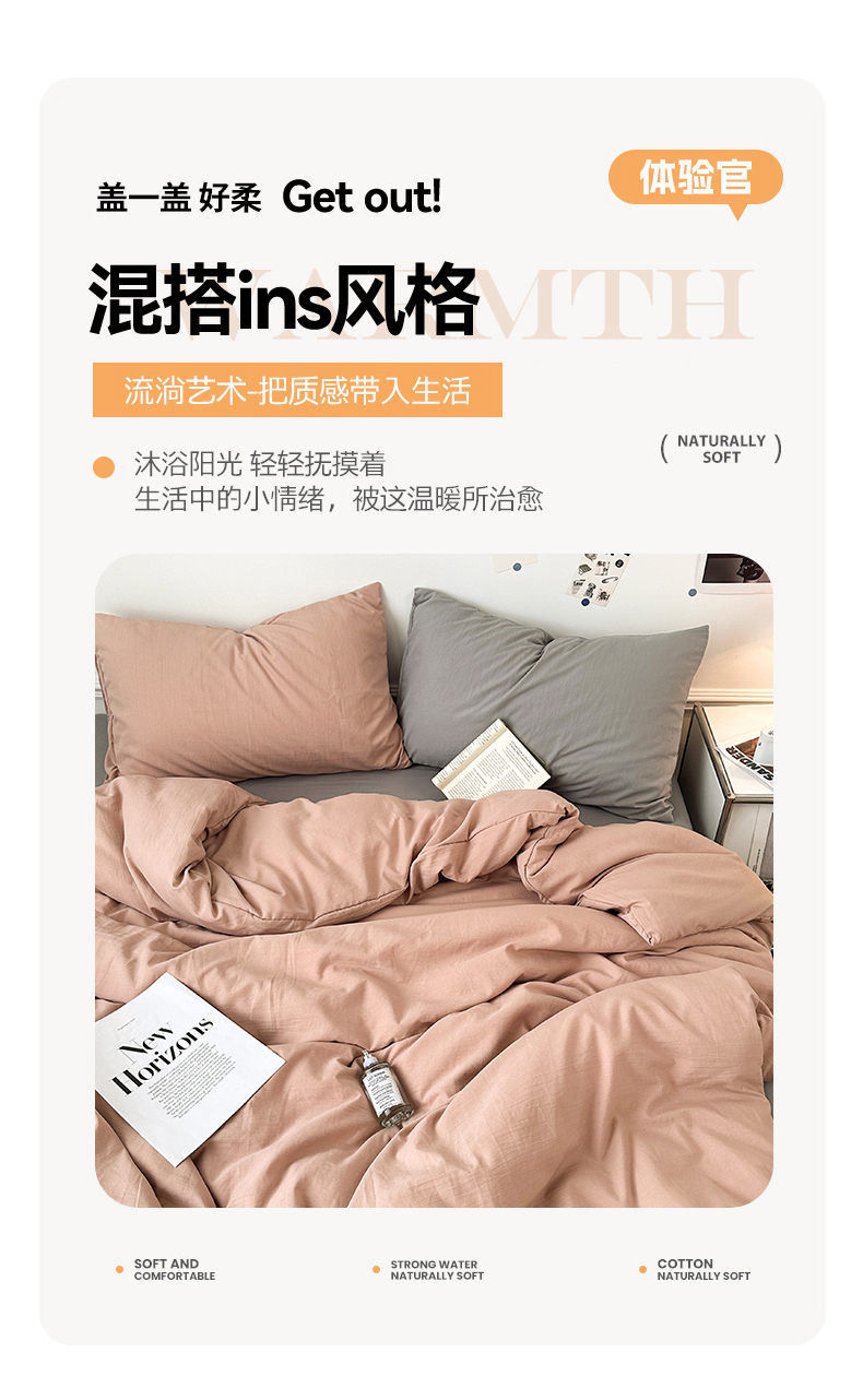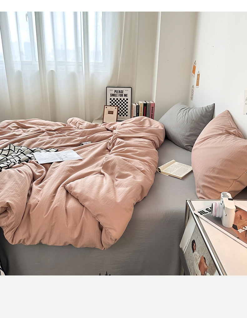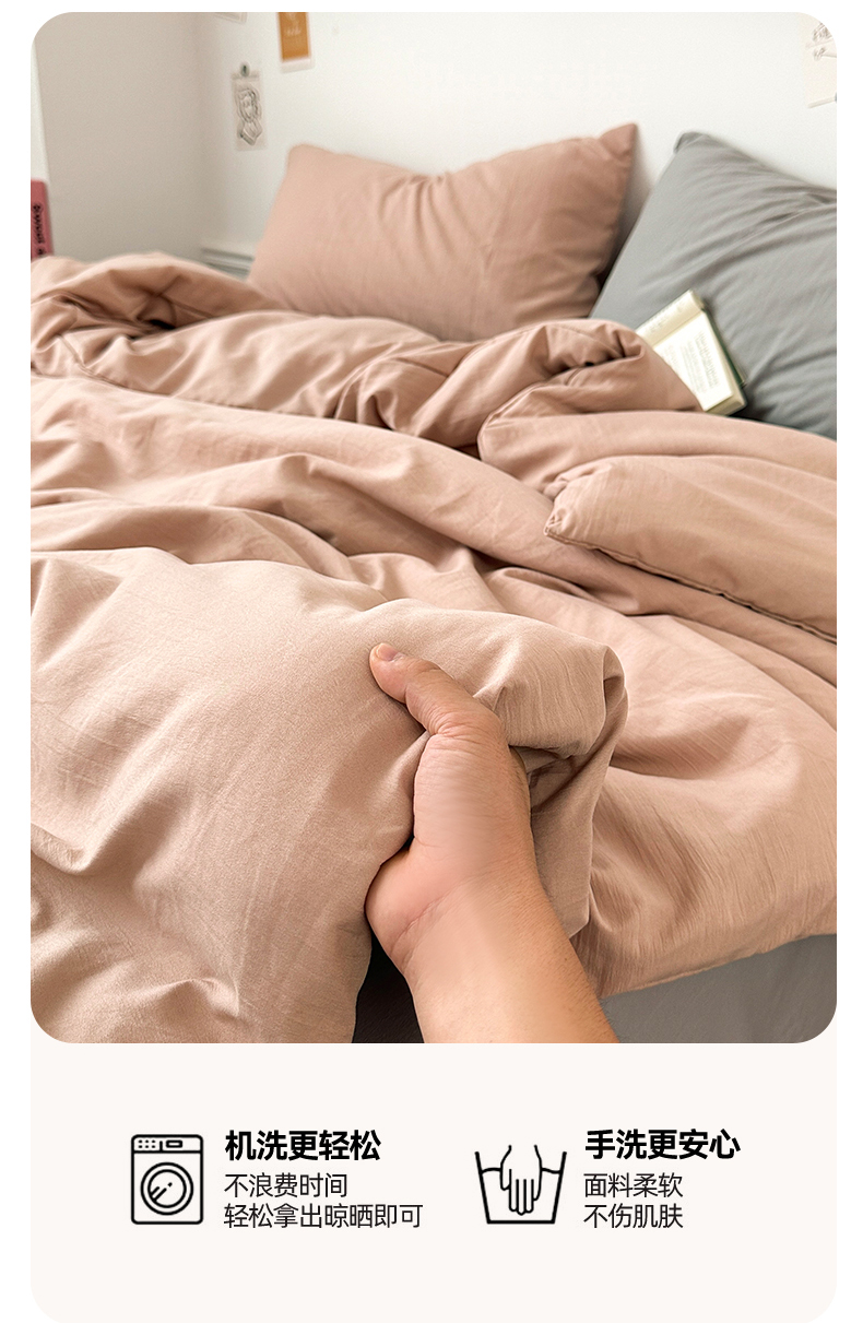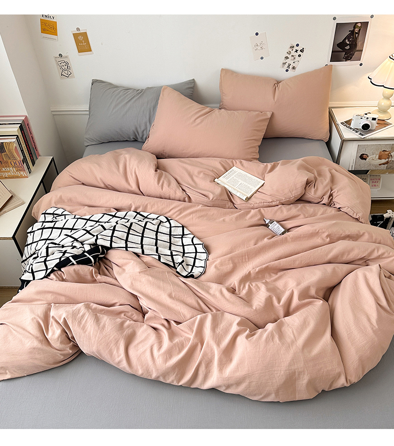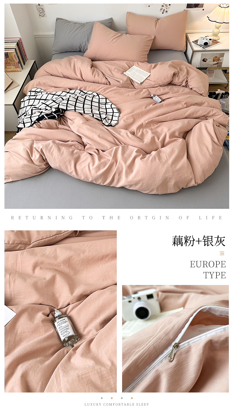• 91家纺网 家纺一手货源 找家纺 多品家纺 2024新款超柔混搭水洗棉四件套--单被套 藕粉+银灰