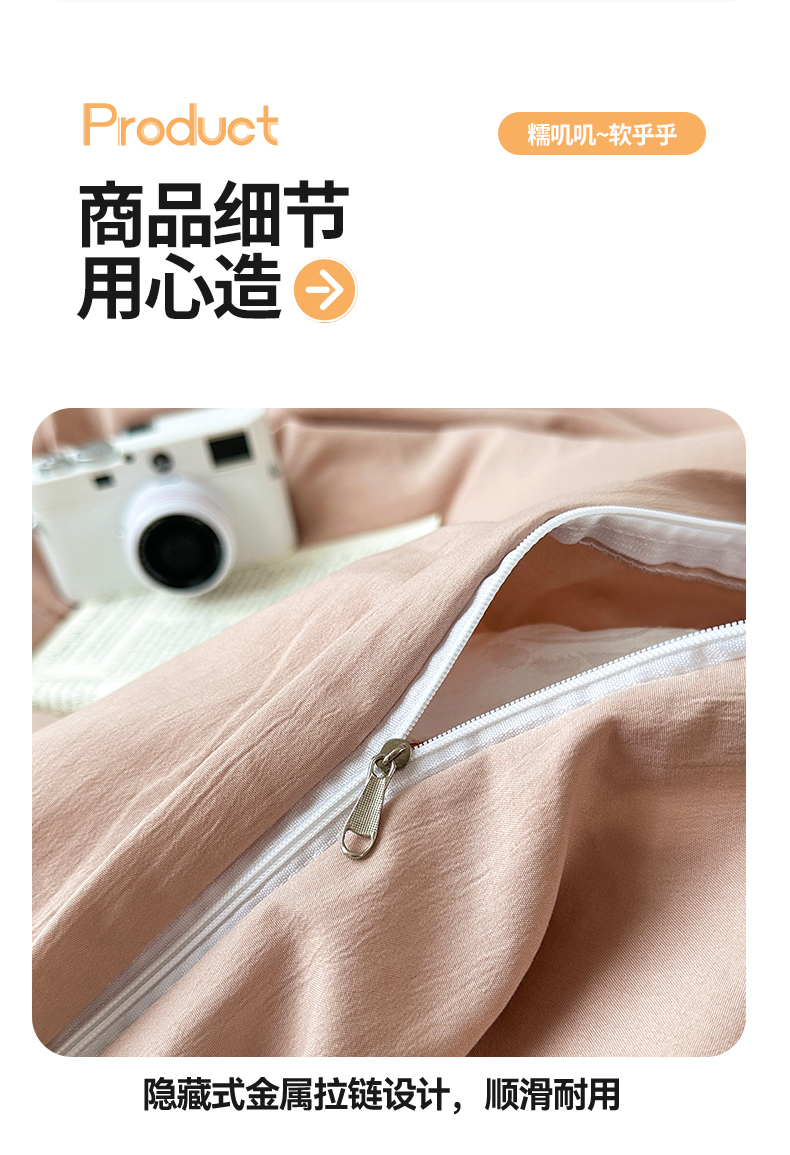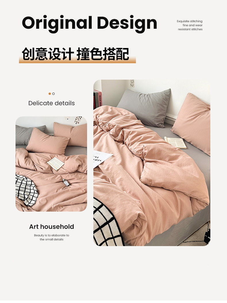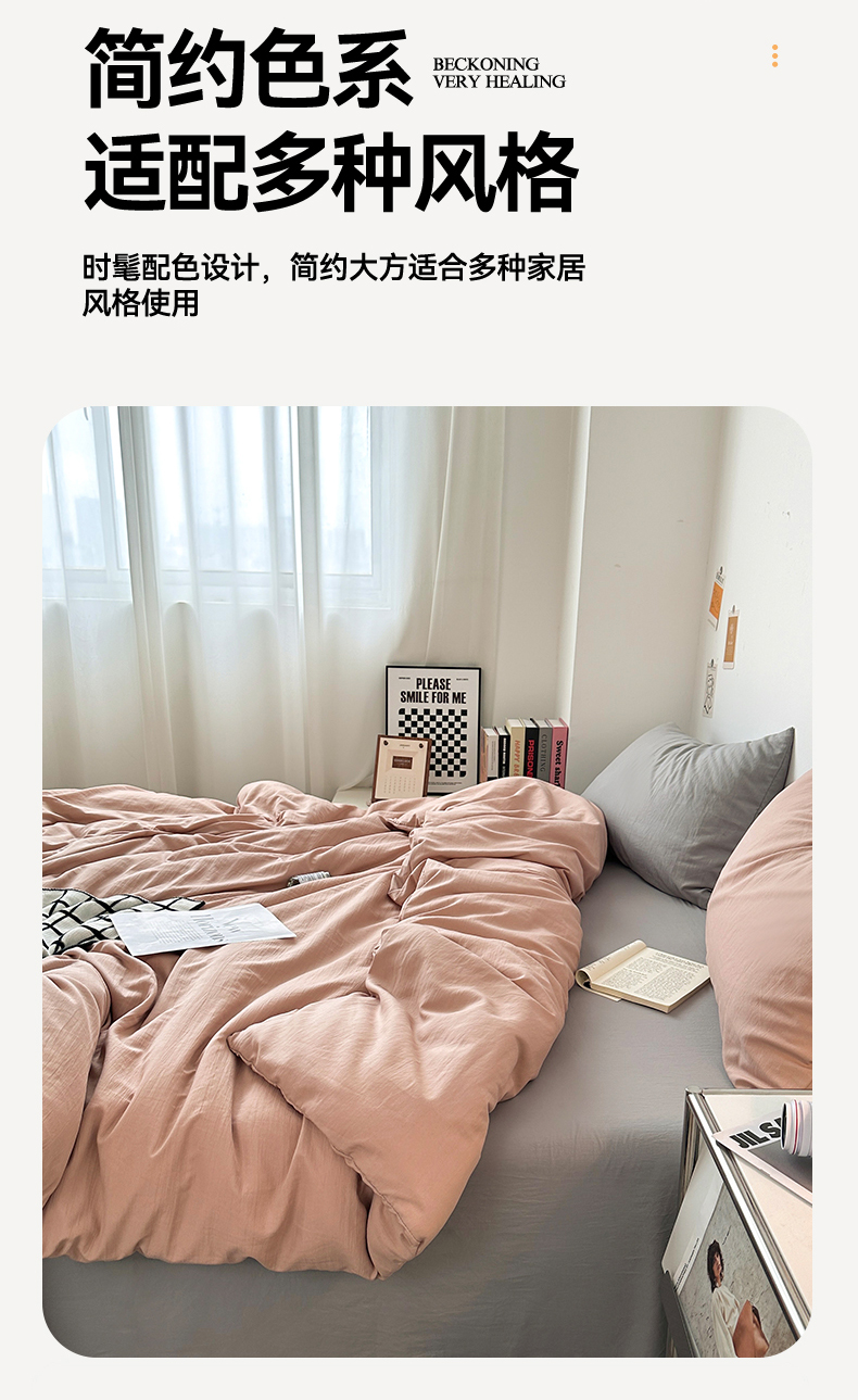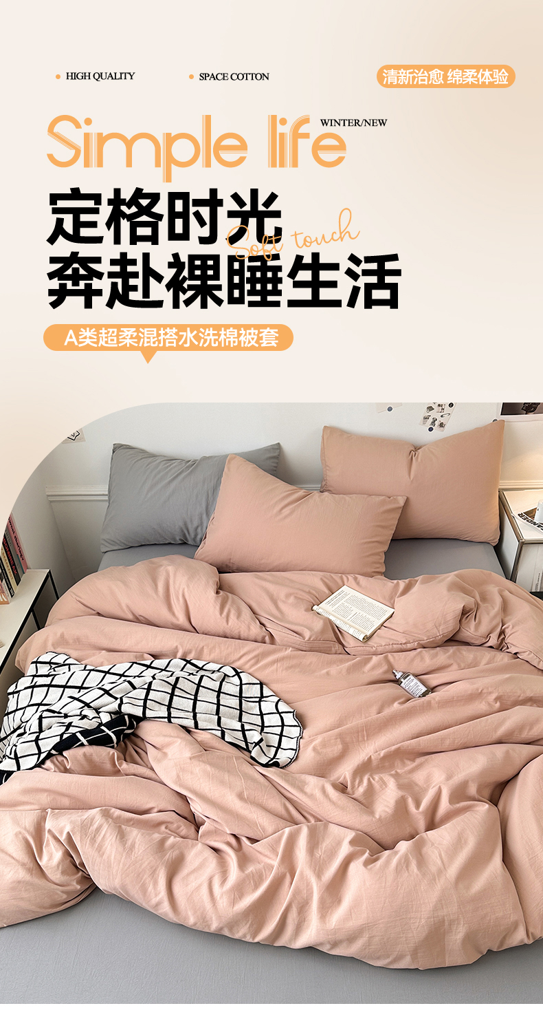 • 91家纺网 家纺一手货源 找家纺 多品家纺 2024新款超柔混搭水洗棉四件套--单被套 藕粉+银灰