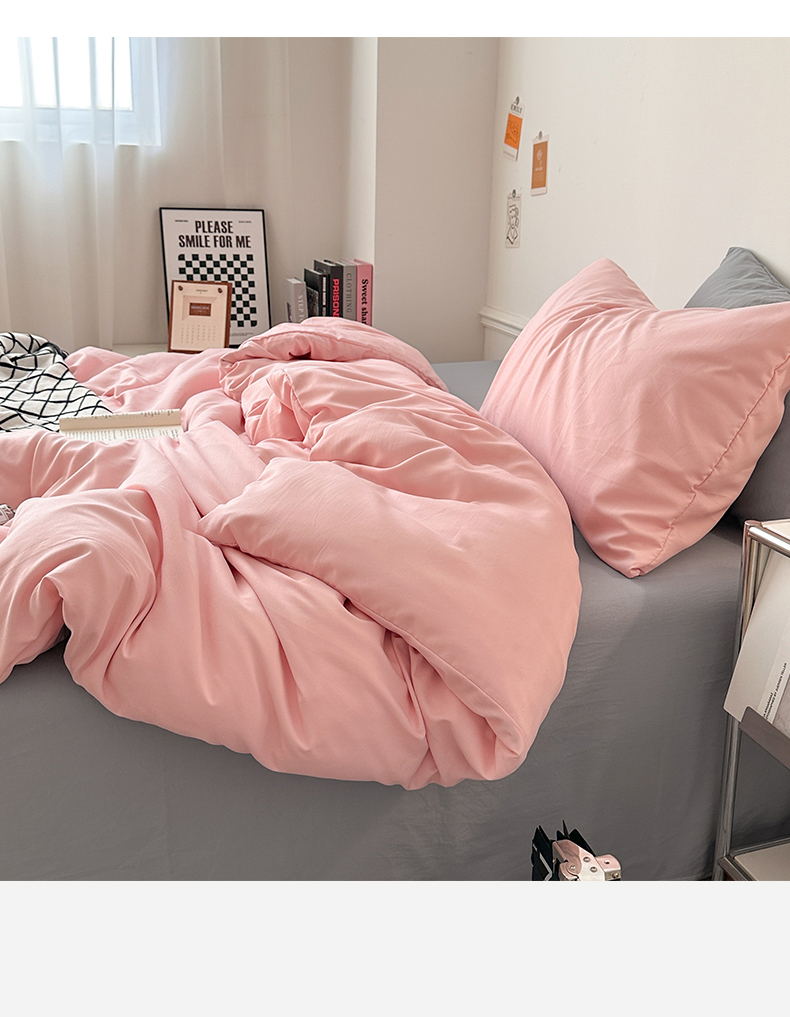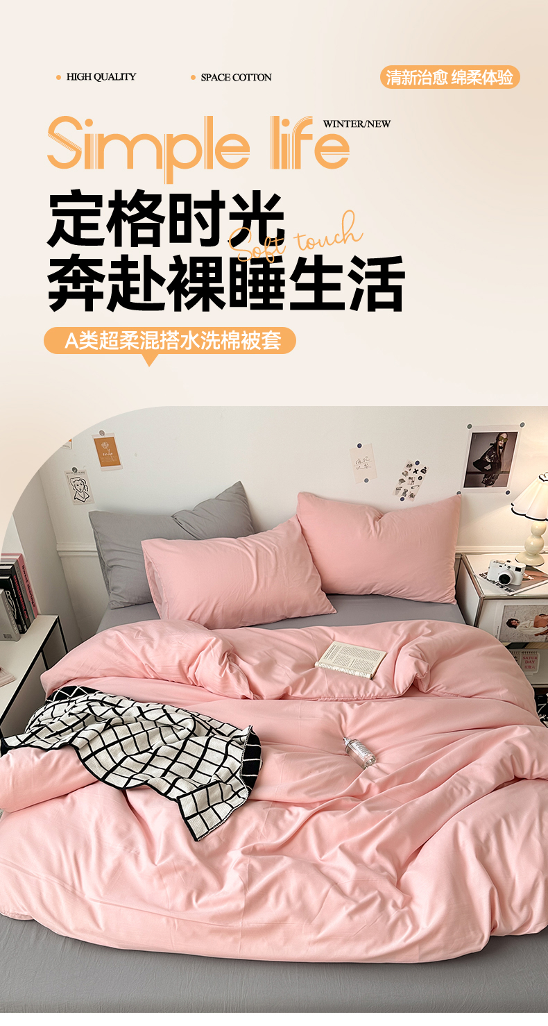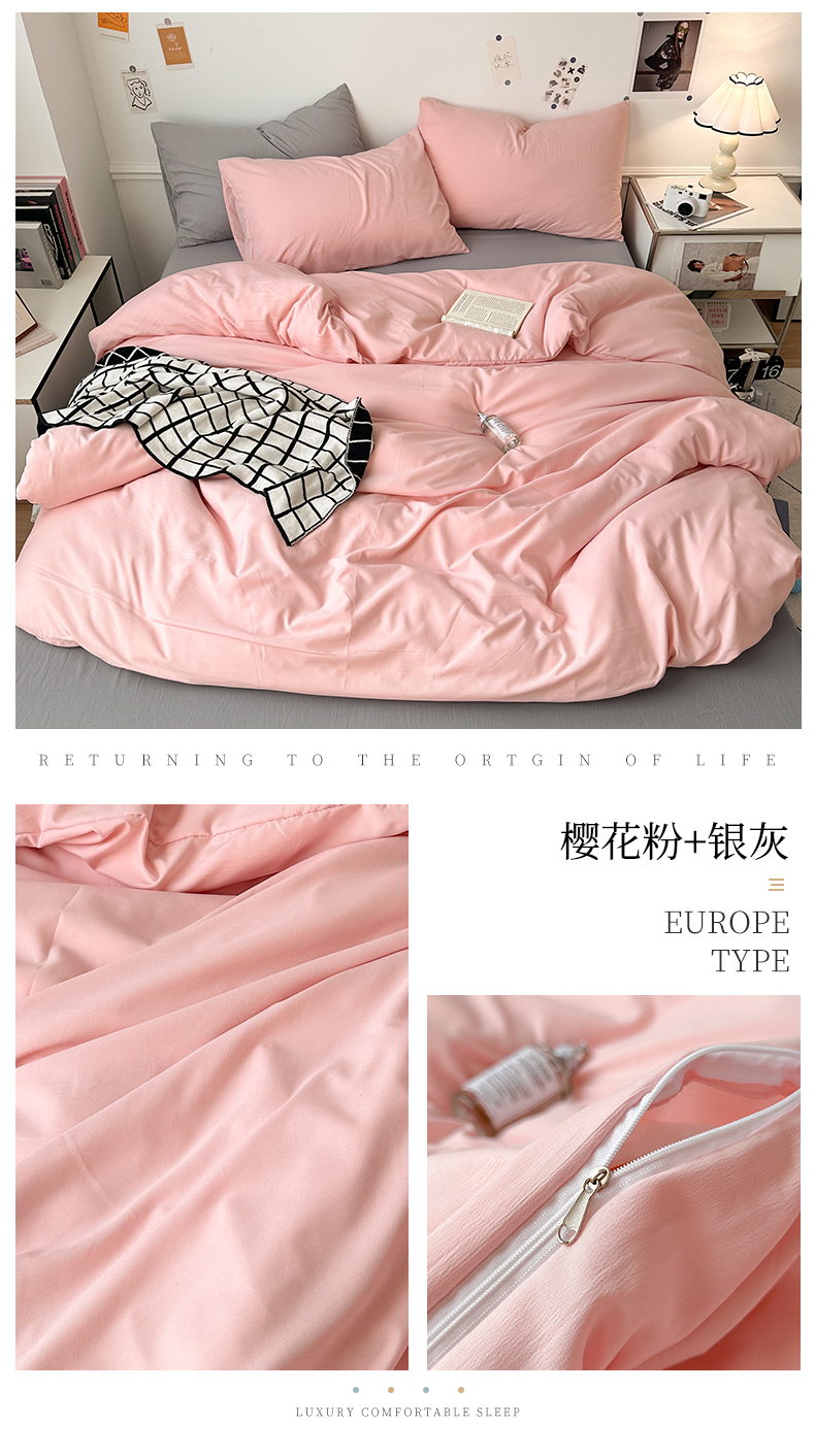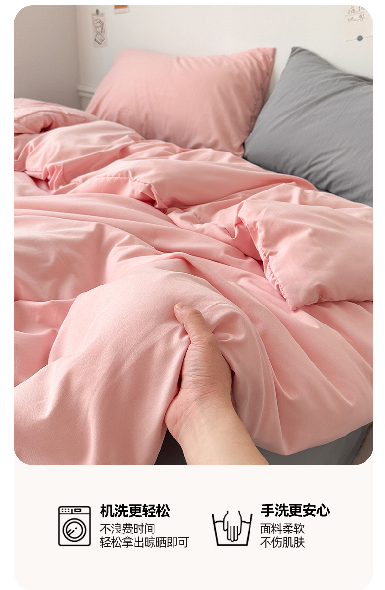 商品名称:多品家纺 2024新款超柔混搭水洗棉四件套--单被套 樱花粉+银灰