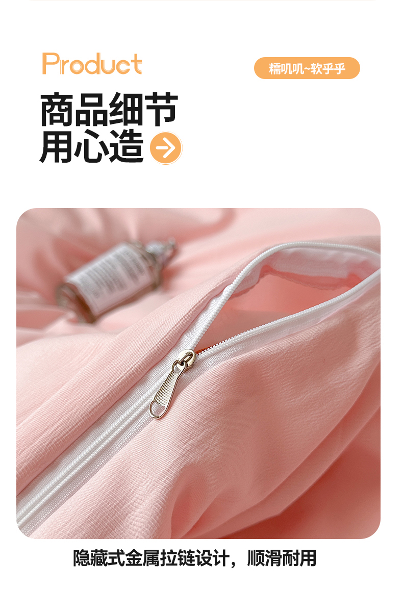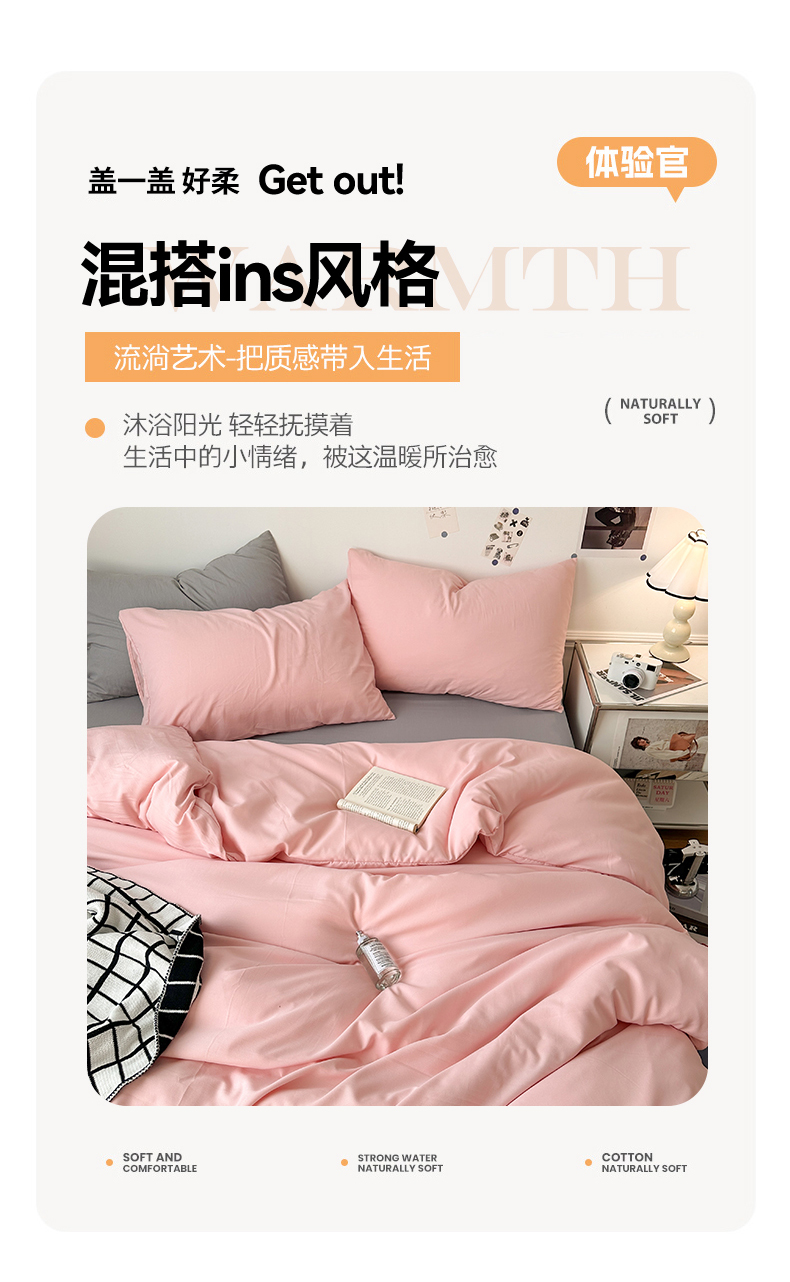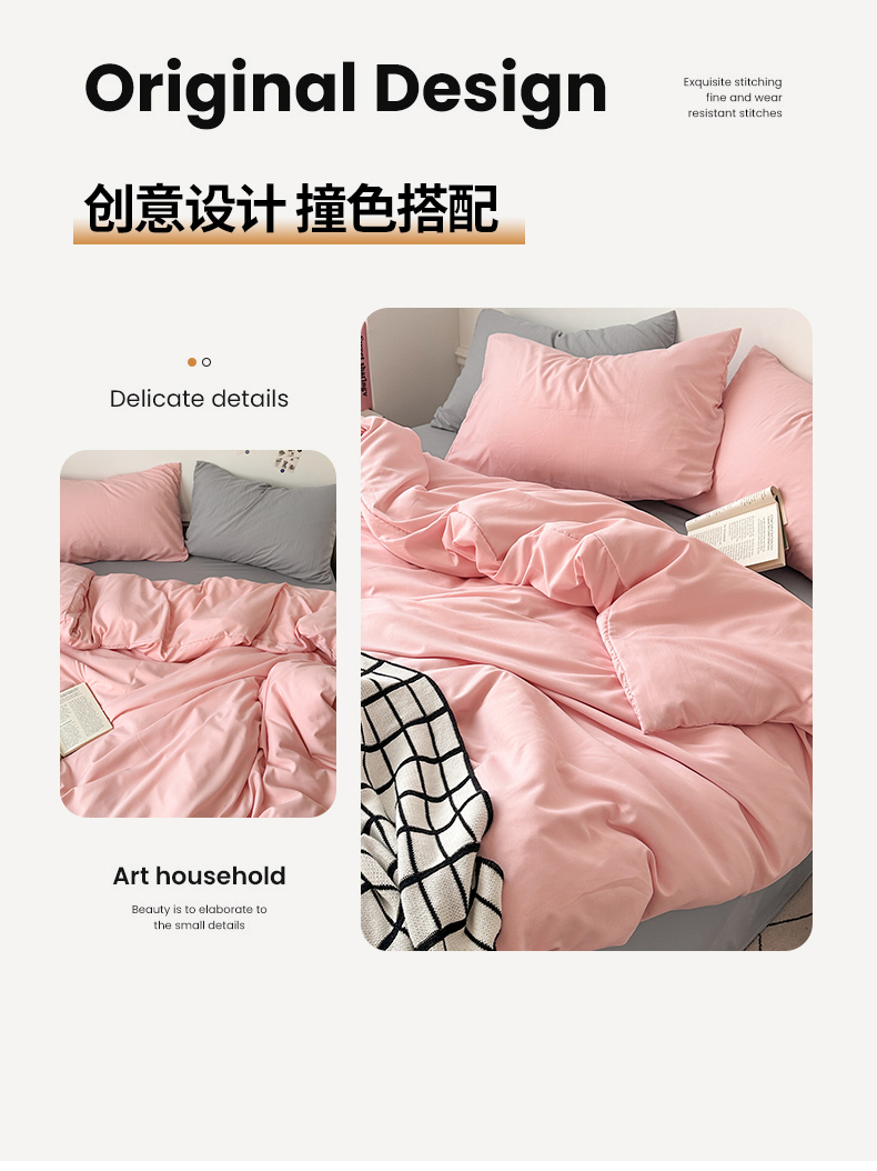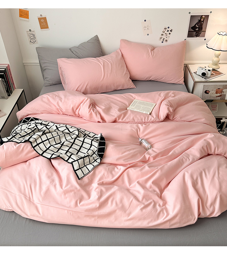 商品名称:多品家纺 2024新款超柔混搭水洗棉四件套--单被套 樱花粉+银灰