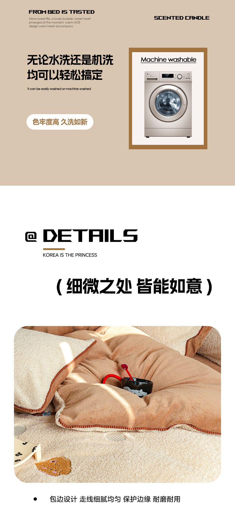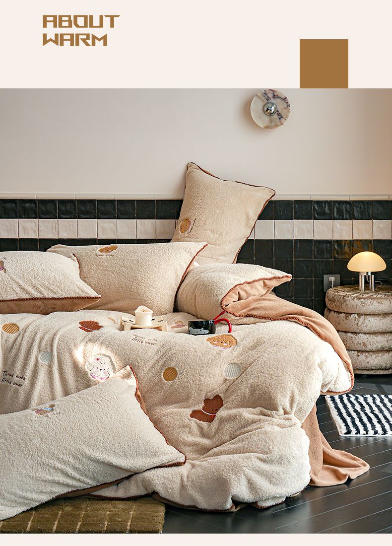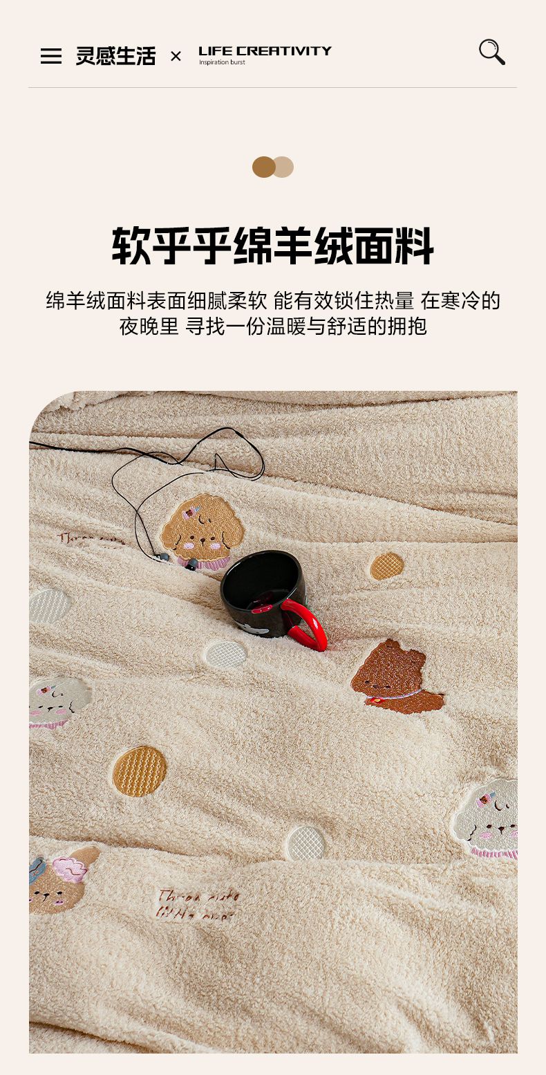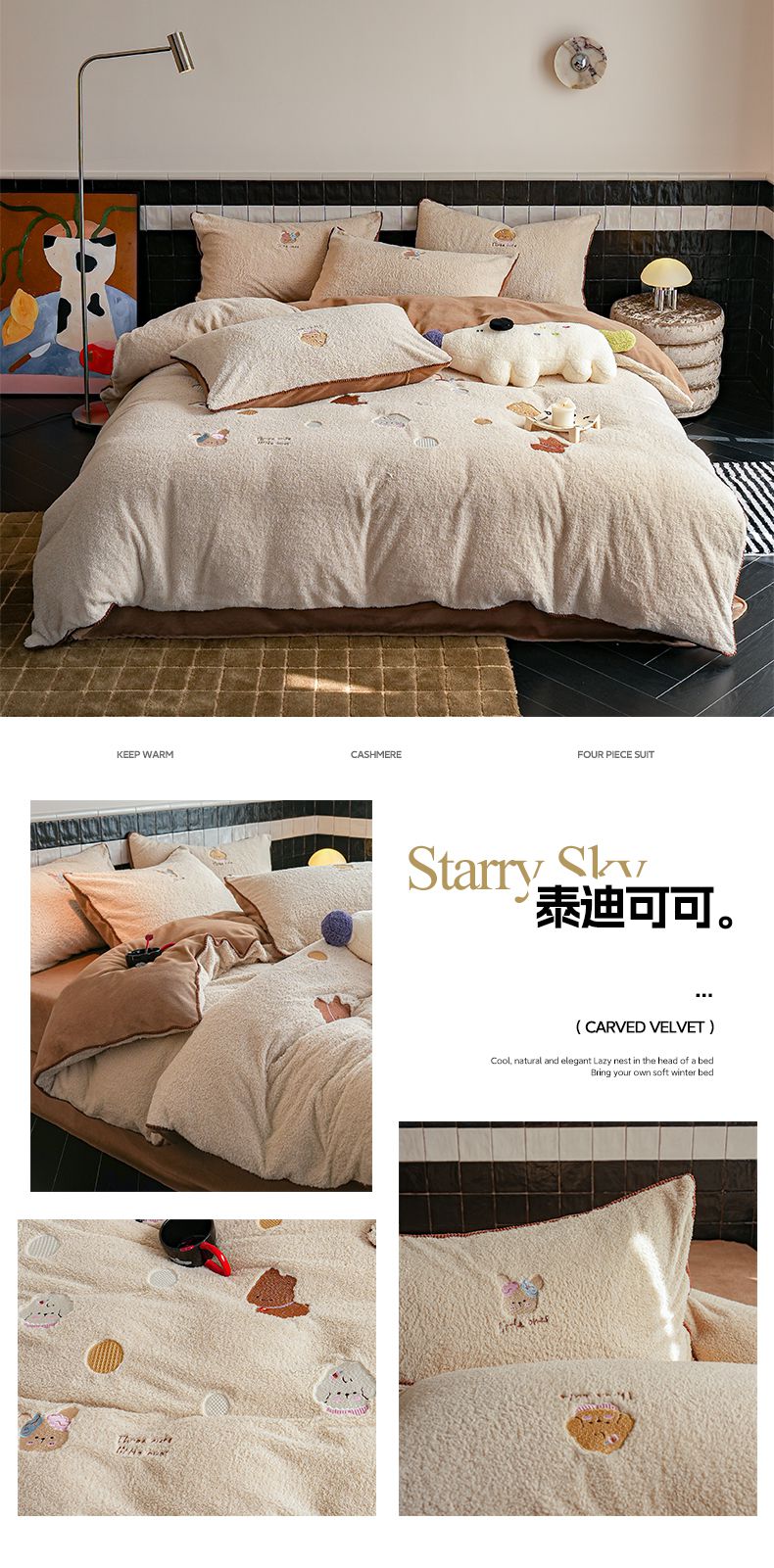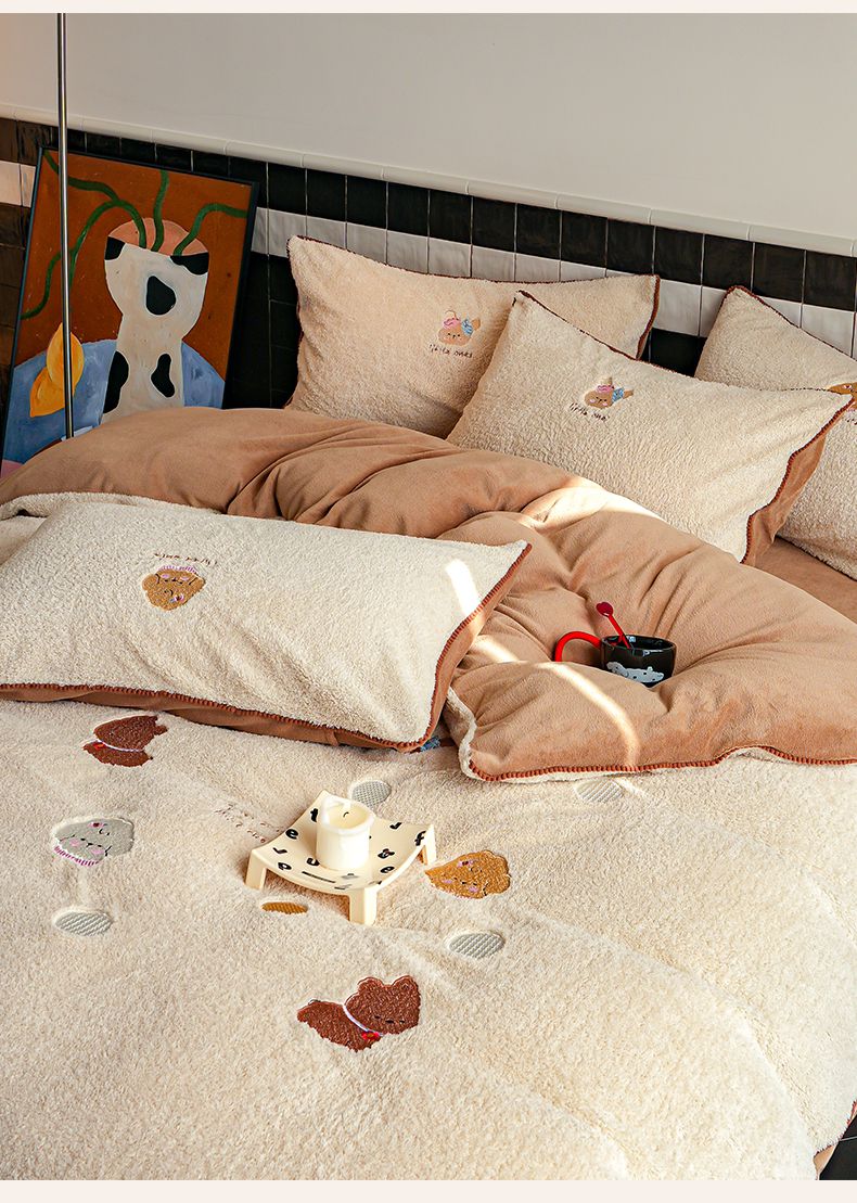 秀色家纺 2025新款卡通风可爱少女心绵羊绒牛奶绒四件套加厚保暖秋冬季法兰绒刺绣被套 懒鹅