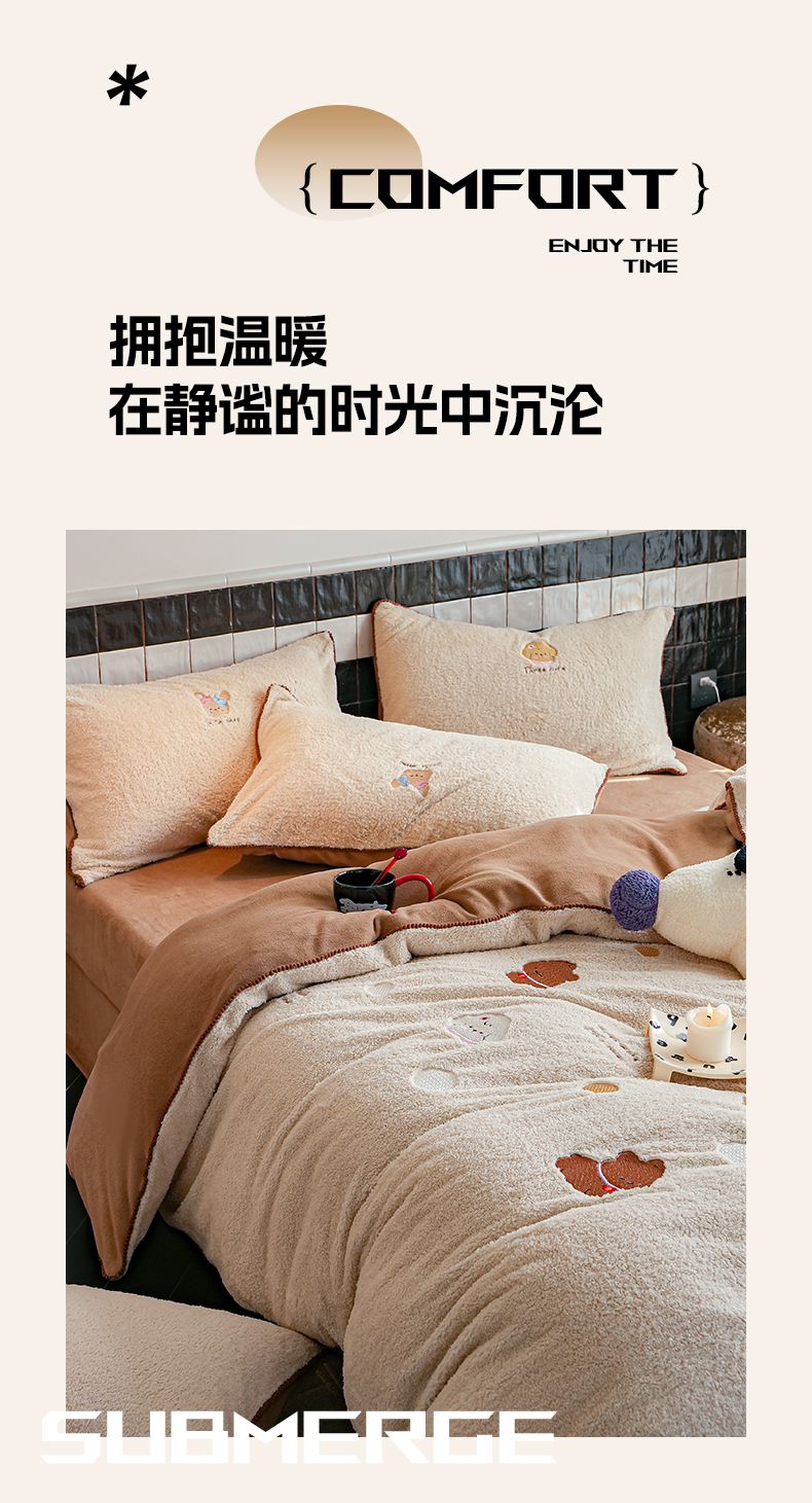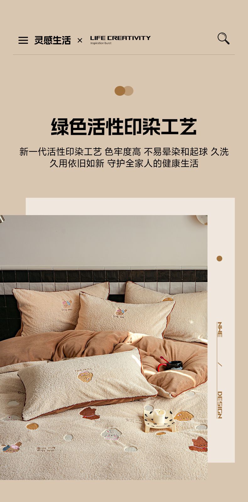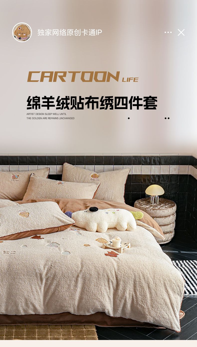 商品名称:秀色家纺 2025新款卡通风可爱少女心绵羊绒牛奶绒四件套加厚保暖秋冬季法兰绒刺绣被套 懒鹅