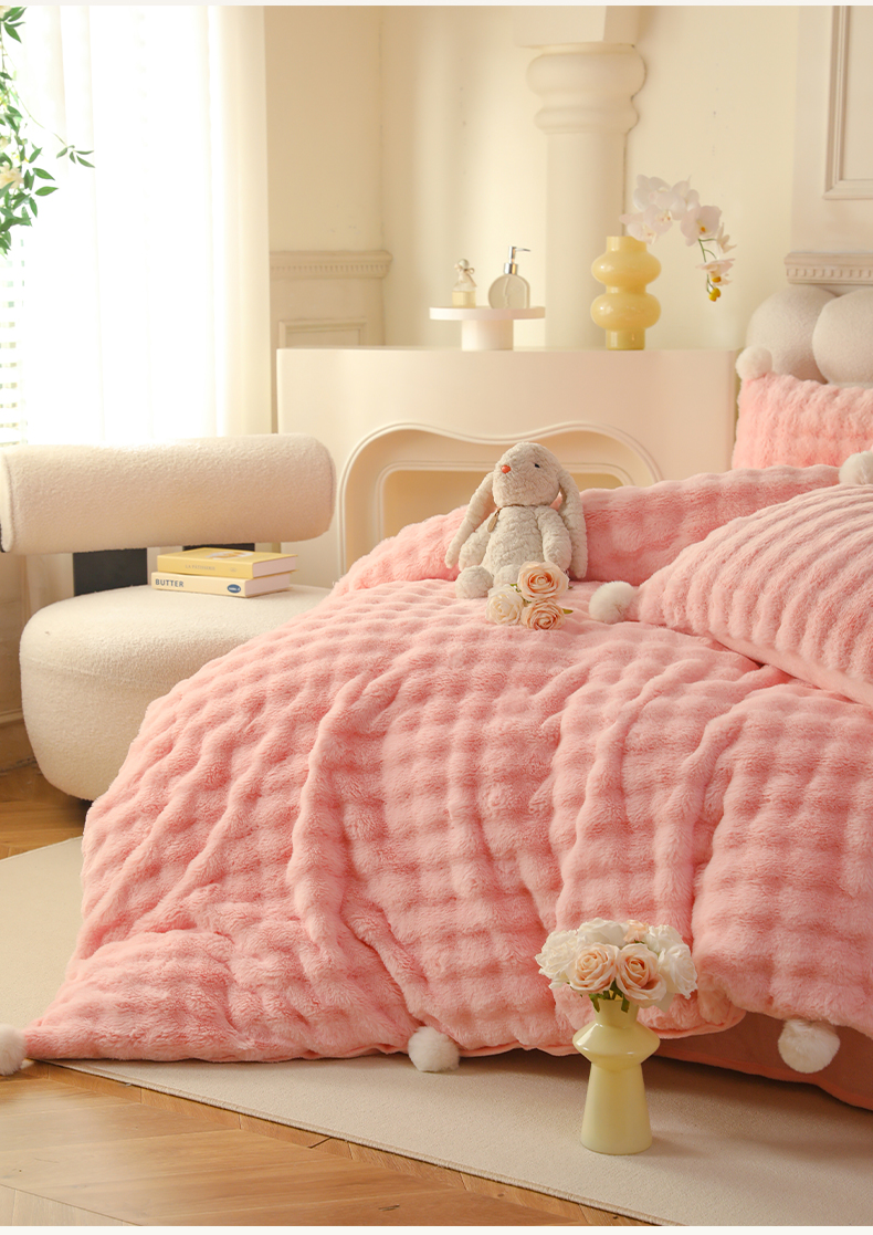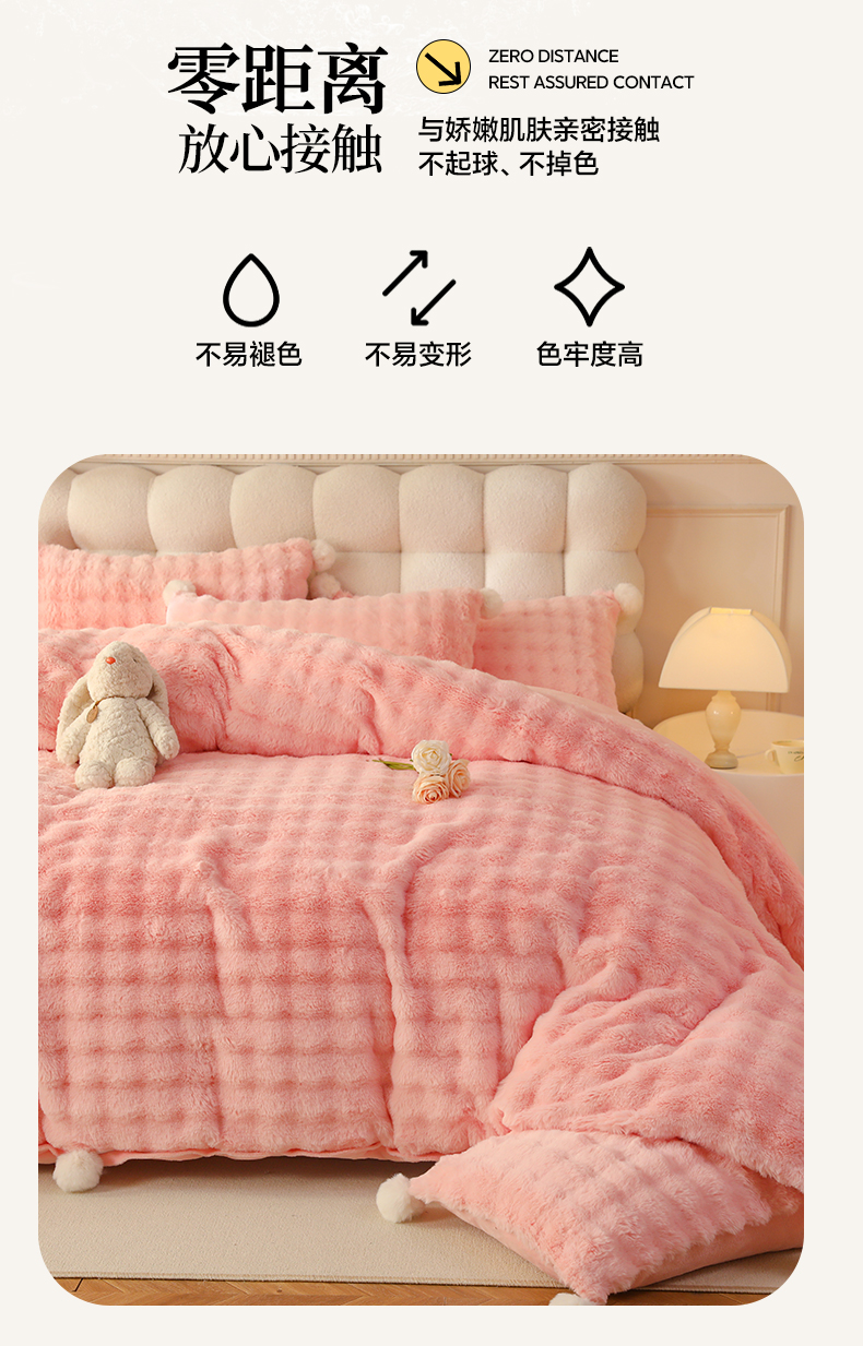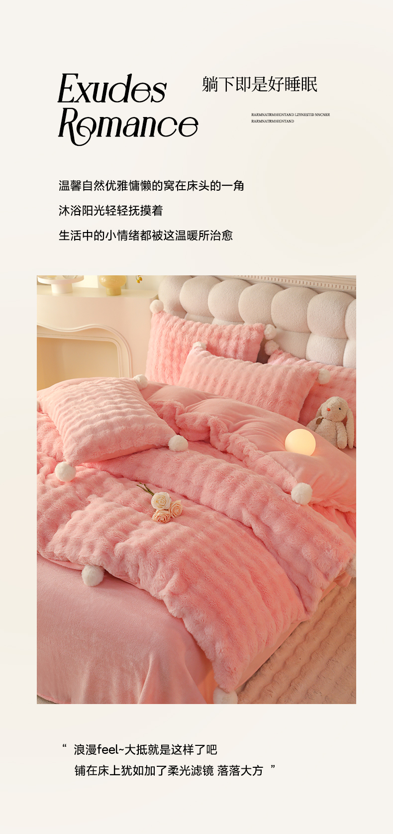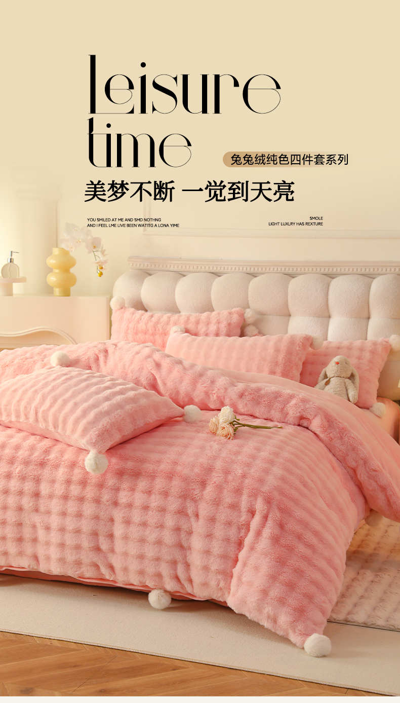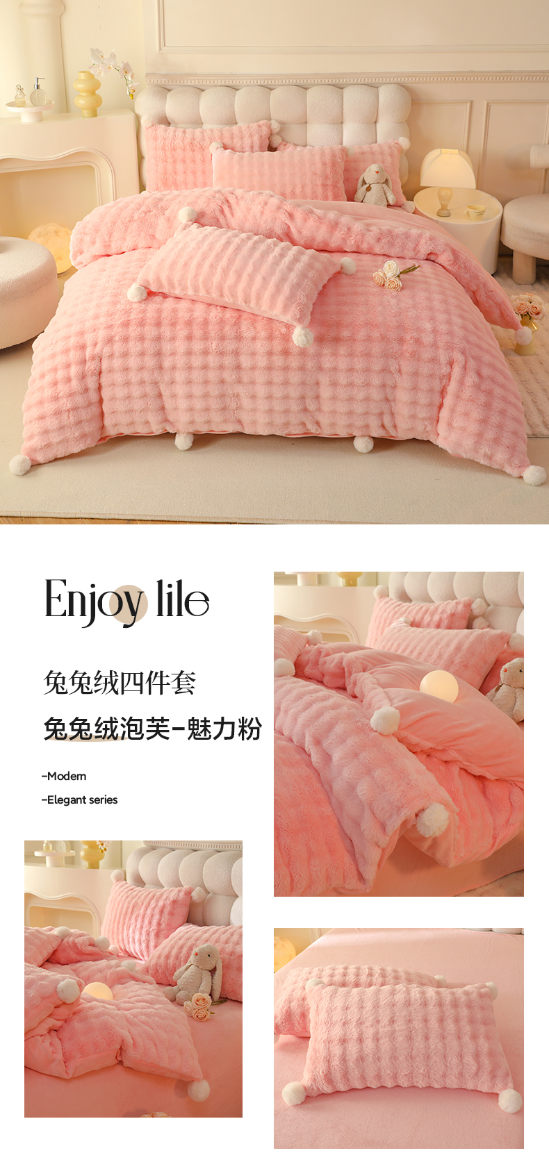 当前位置: 91家纺网 > 商品网购 > 床品套件 > 四件套 > 兔毛绒四件套 > 逸尚阁 2024新款兔兔绒纯色泡泡毛球四件套 兔兔绒泡芙-魅力粉
