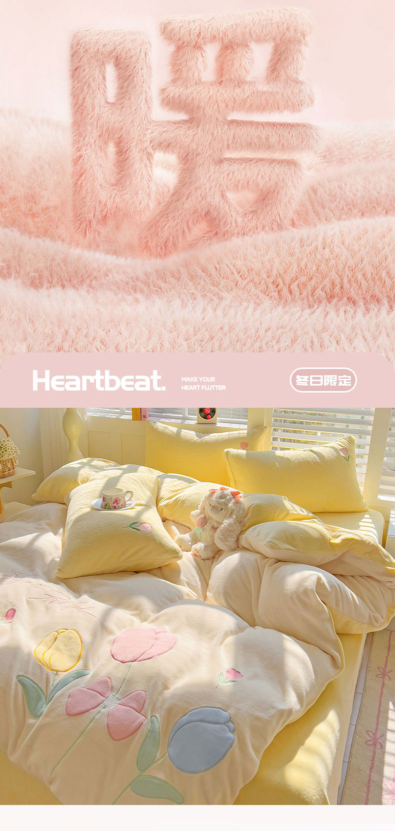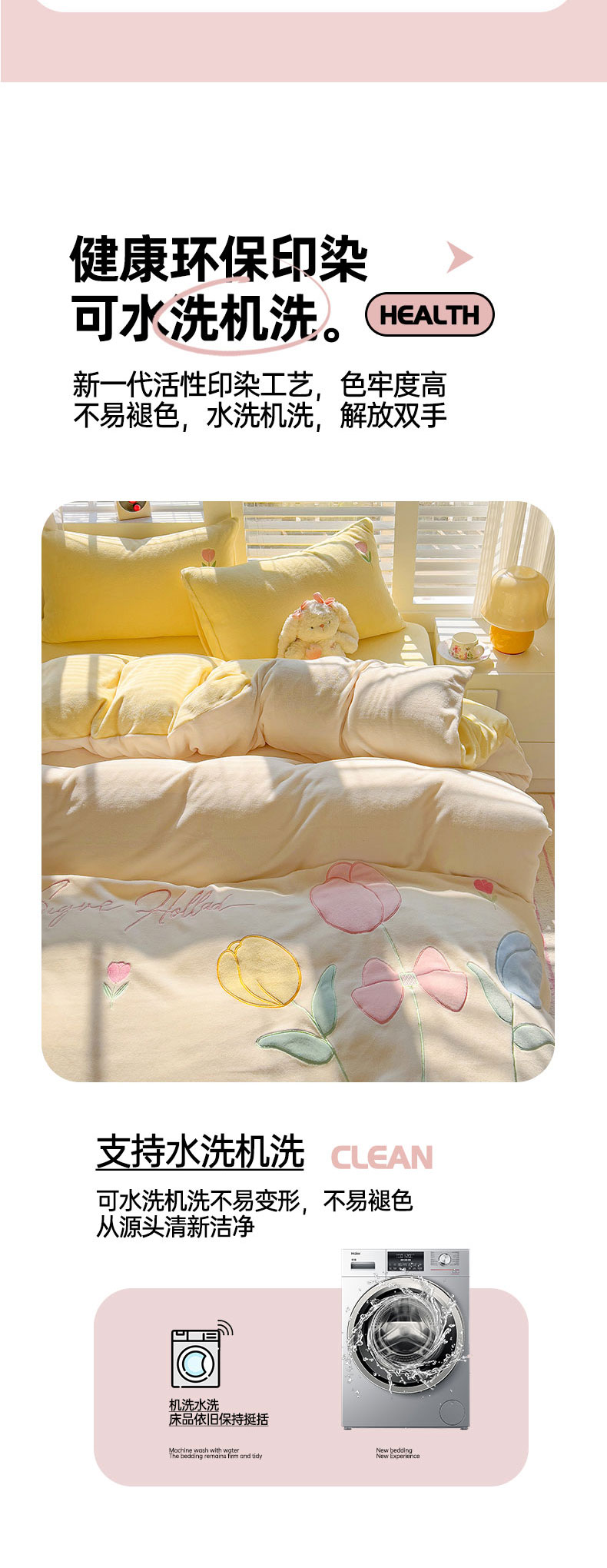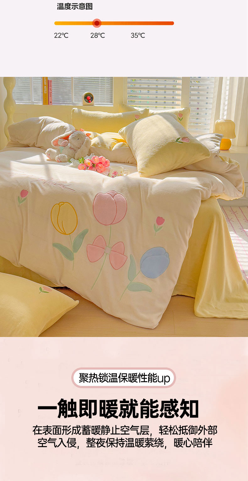 当前位置: 91家纺网 > 商品网购 > 床品套件 > 四件套 > 牛奶绒四件套 > 灰鲸 2025新款高克重牛奶绒大版郁金香花朵贴布绣四件套 贴布绣郁金香-奶昔白+奶油黄
