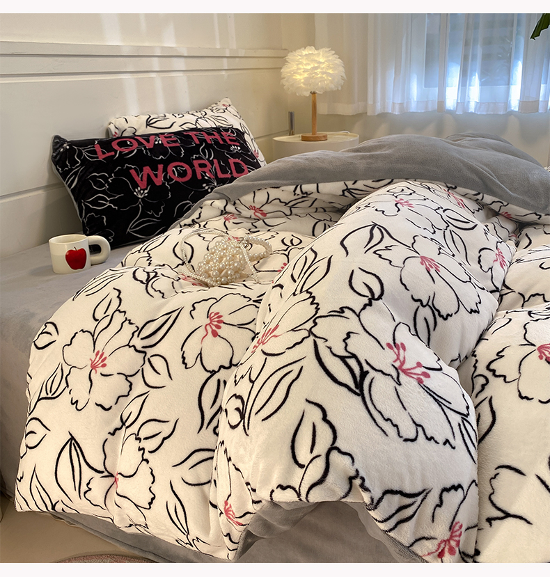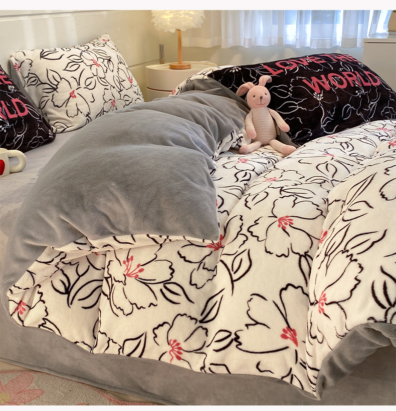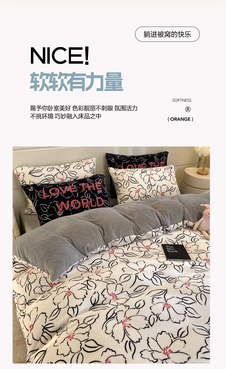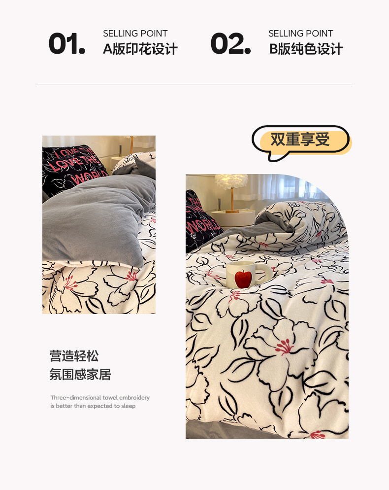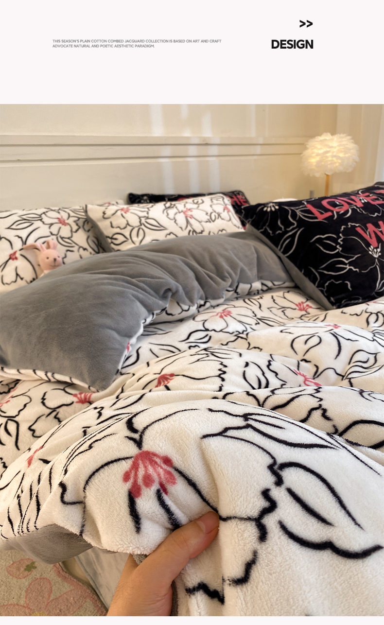 如一 2024新款A类高克重印花牛奶绒四件套 花意浓