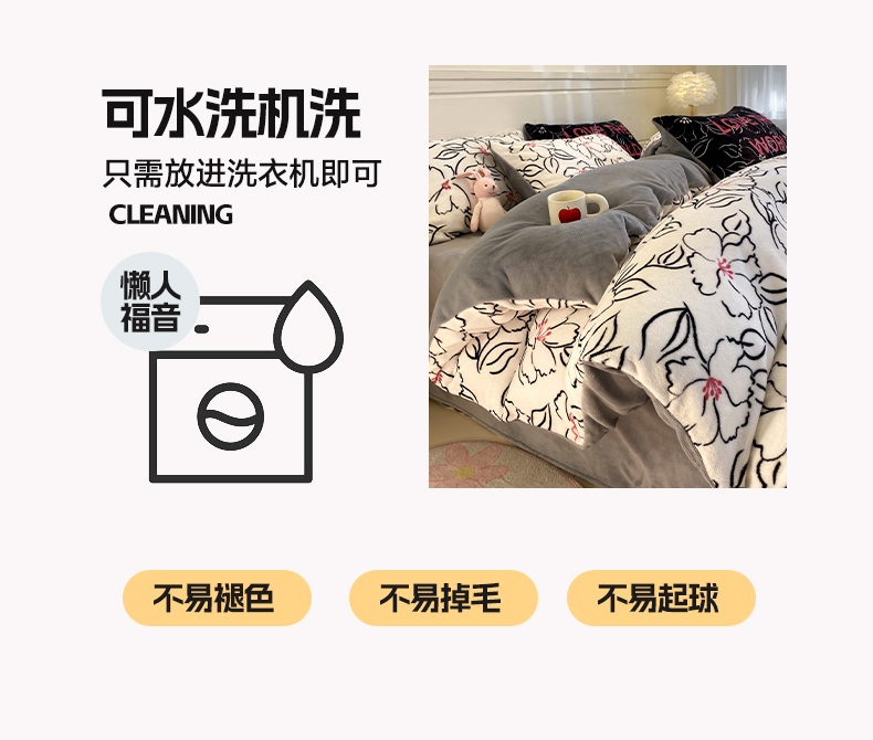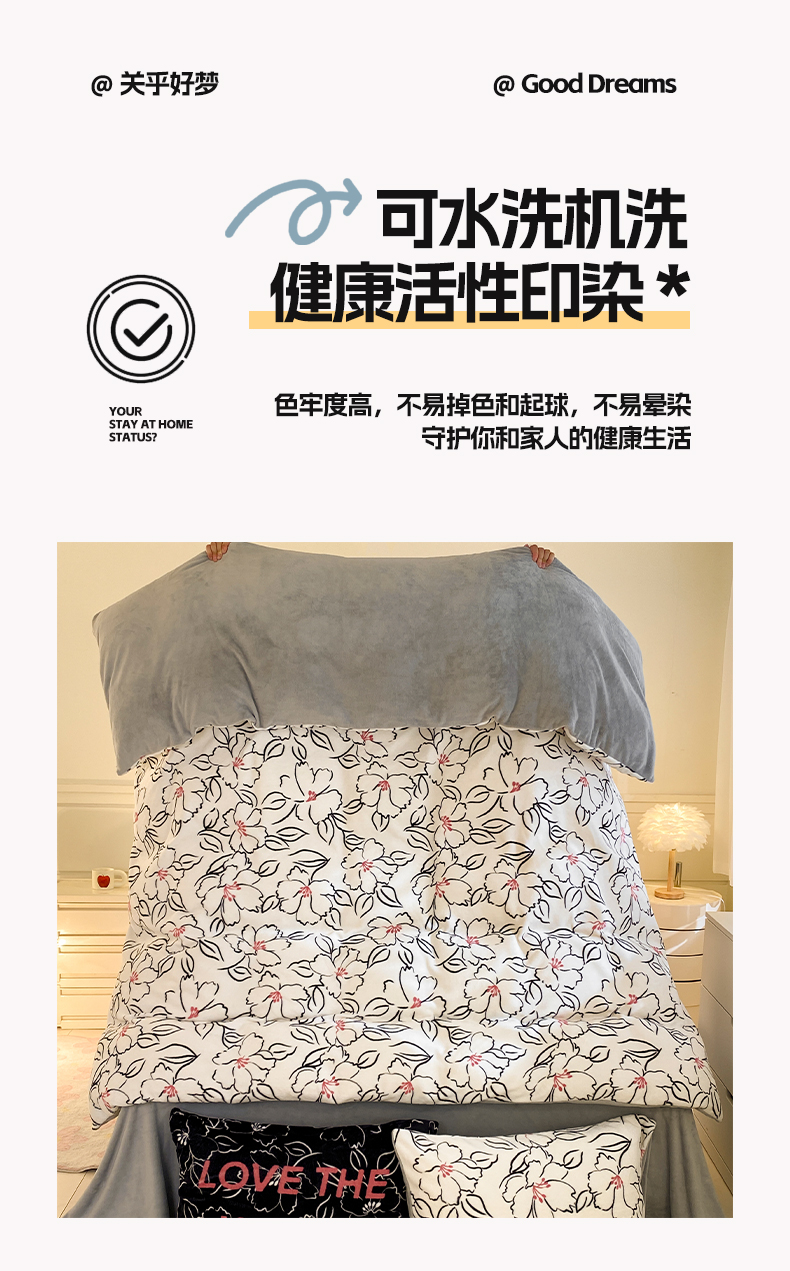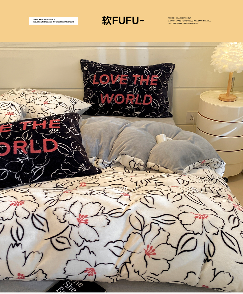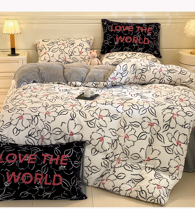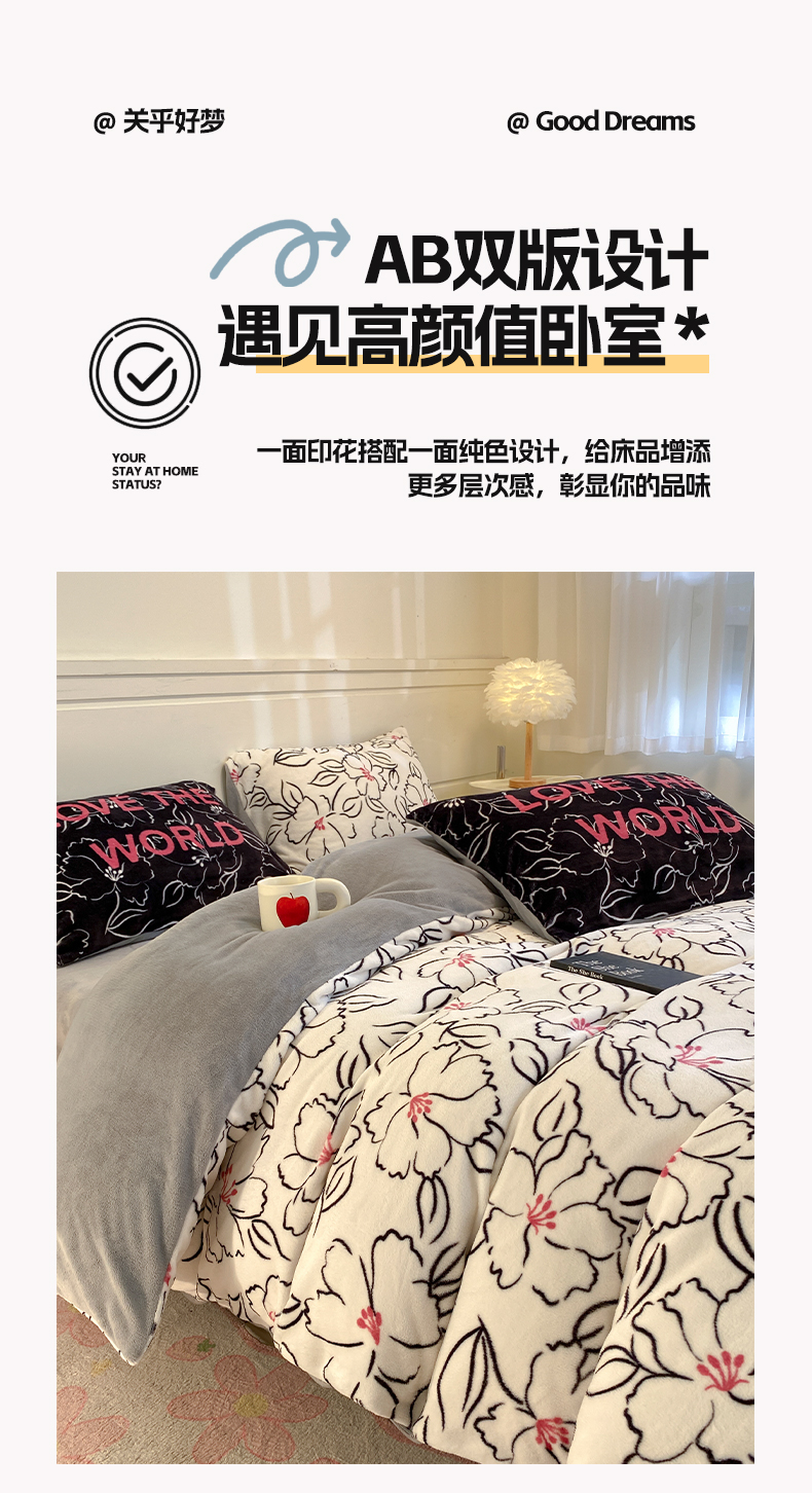 如一 2024新款A类高克重印花牛奶绒四件套 花意浓