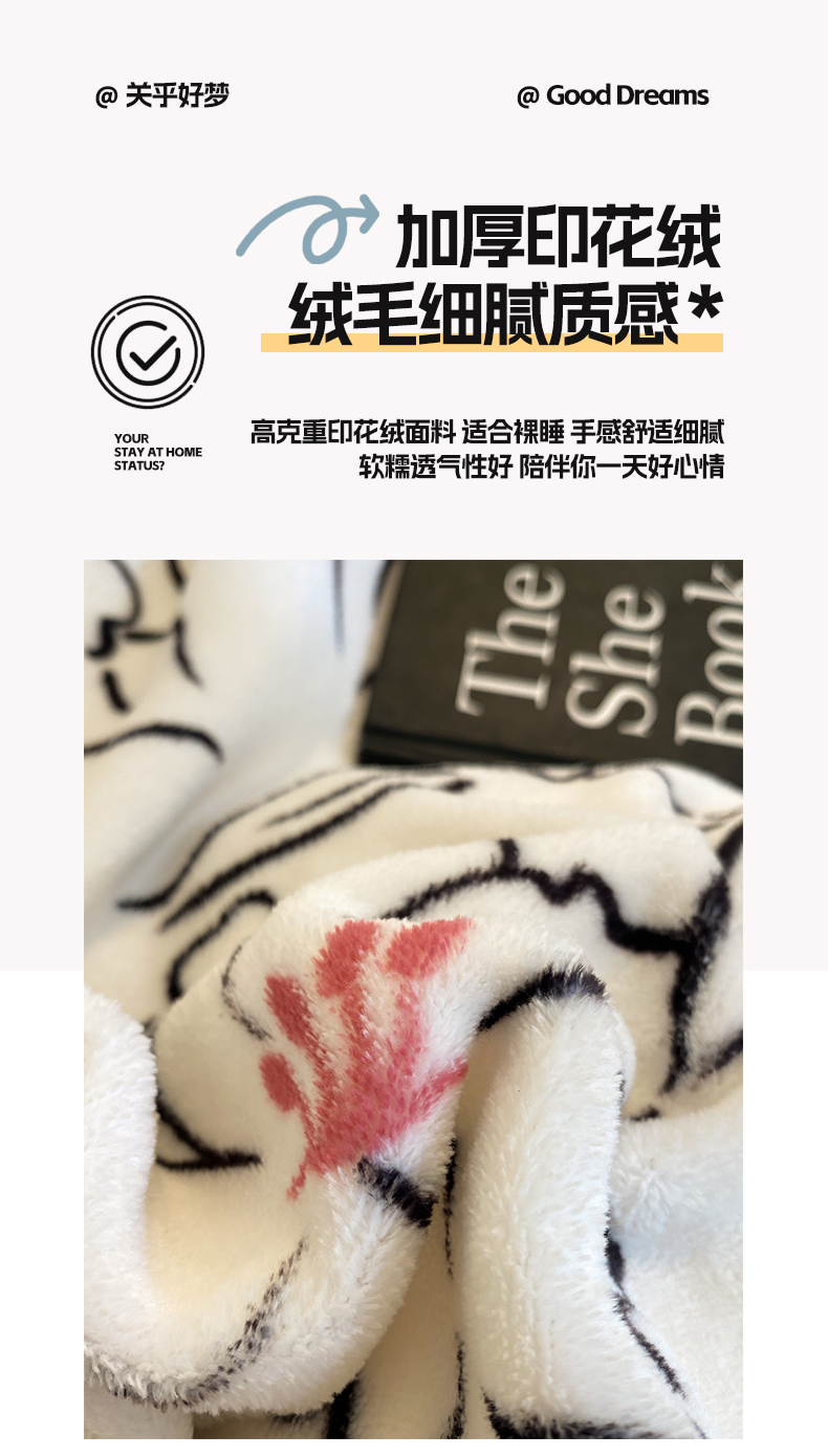 商品名称:如一 2024新款A类高克重印花牛奶绒四件套 花意浓