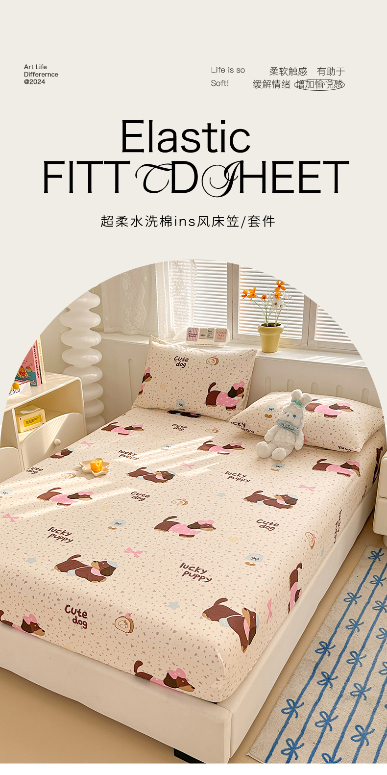 多品家纺 2024新款超柔水洗棉ins风单品床笠 小可爱
