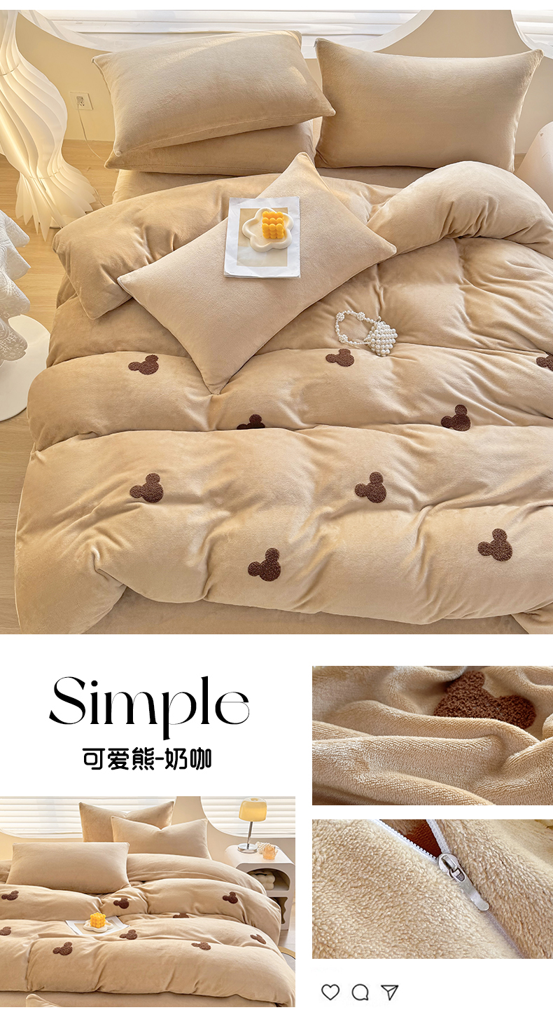 当前位置: 91家纺网 > 商品网购 > 床品套件 > 四件套 > 牛奶绒四件套 > 满羽家纺 2024爆款冬季加厚毛巾绣牛奶绒四件套可爱熊-奶咖