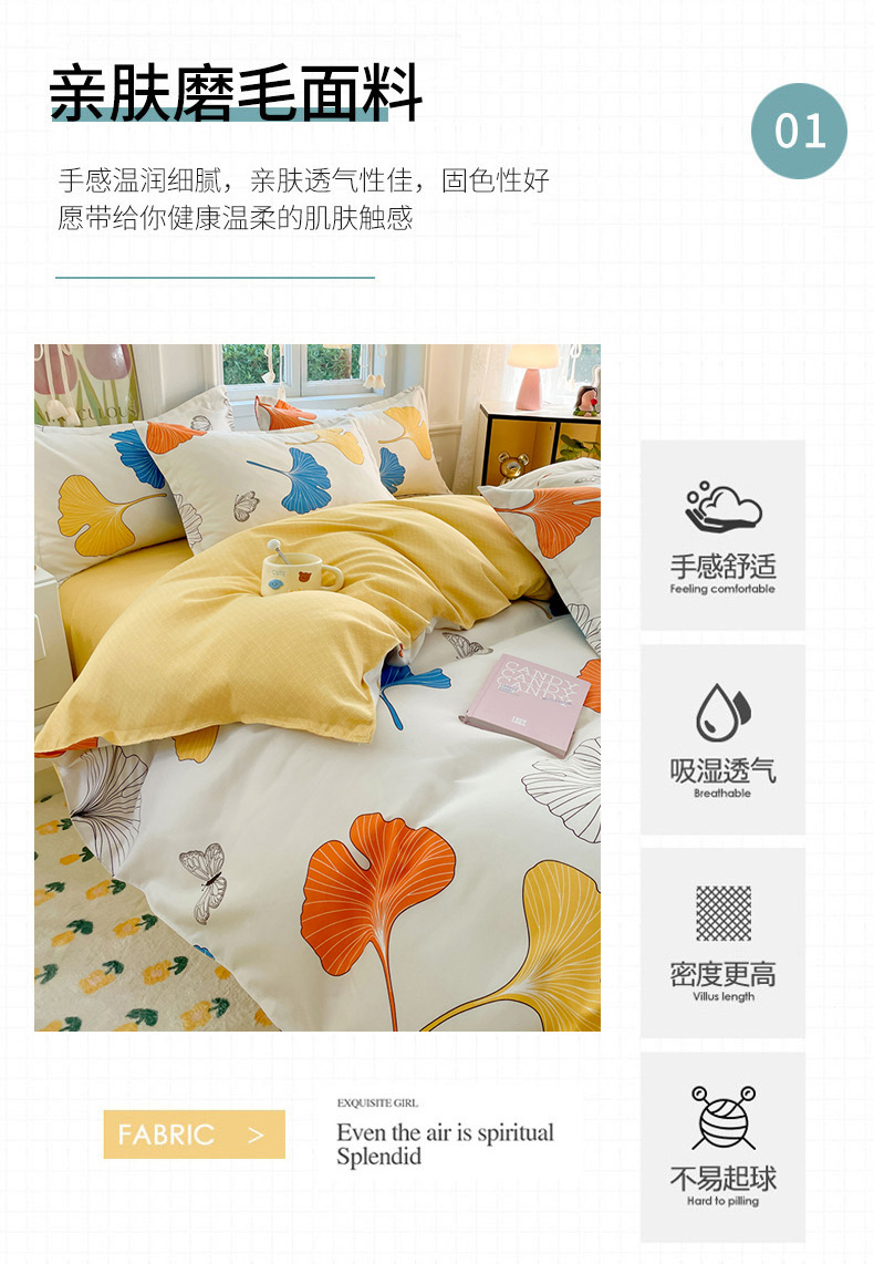 商品名称:世爵 2025新款磨毛印花单被套 银杏叶