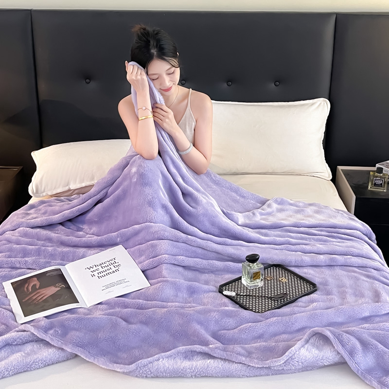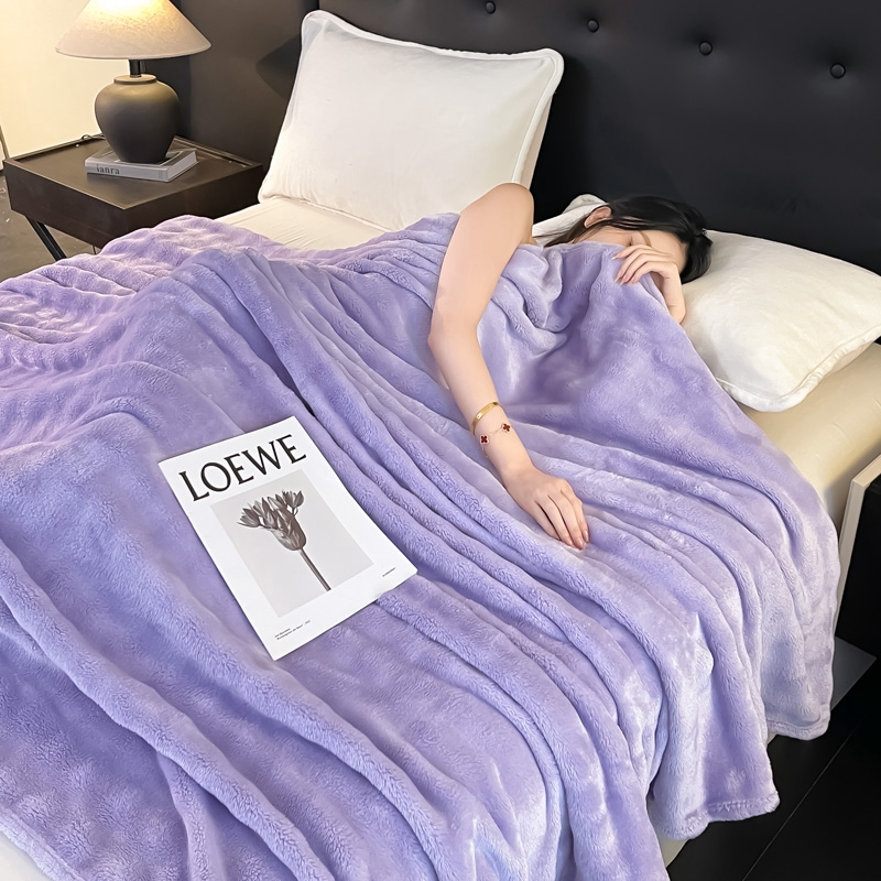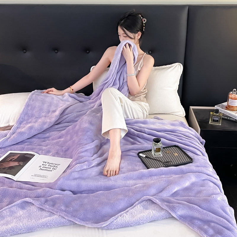 一帆毯业 免费压缩抽空 300克 仿兔毛泡泡绒高克重法莱绒牛奶绒珊瑚绒兔兔卷边毛毯(外贸跨境供货) 香芋紫