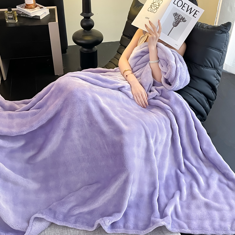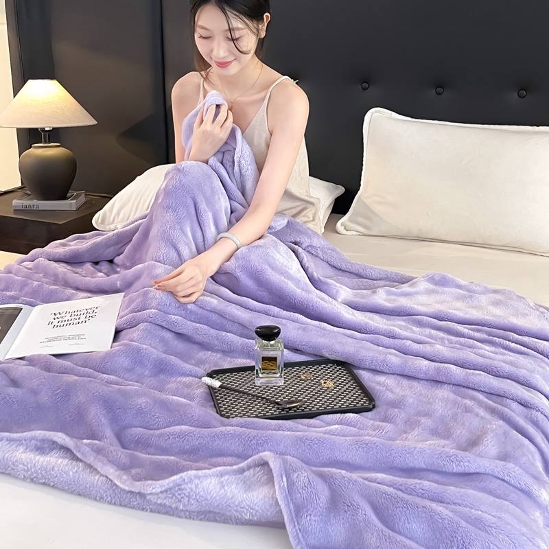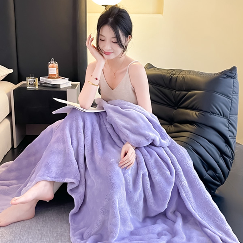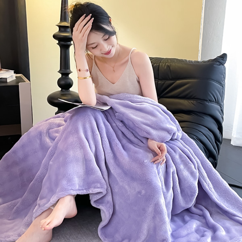 商品名称:一帆毯业 免费压缩抽空 300克 仿兔毛泡泡绒高克重法莱绒牛奶绒珊瑚绒兔兔卷边毛毯(外贸跨境供货) 香芋紫