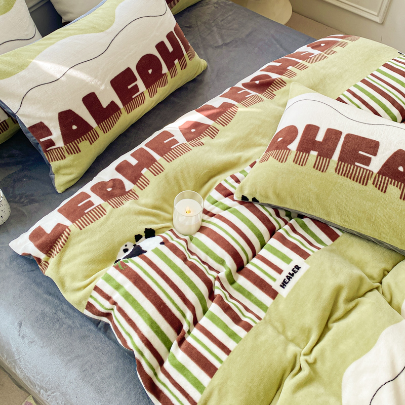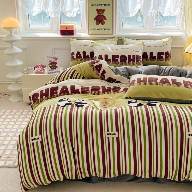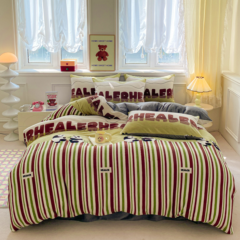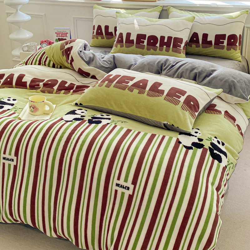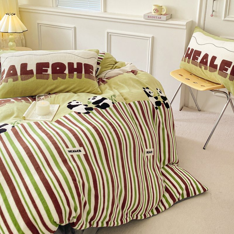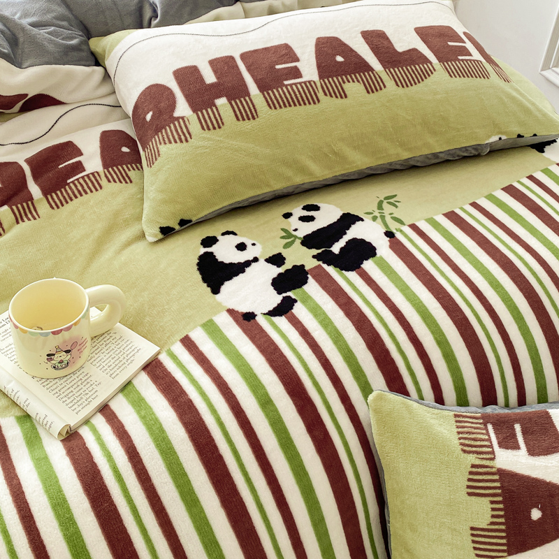 商品名称:斯卡诺家纺 2025新款小清新双面牛奶绒印花四件套 熊猫乐园