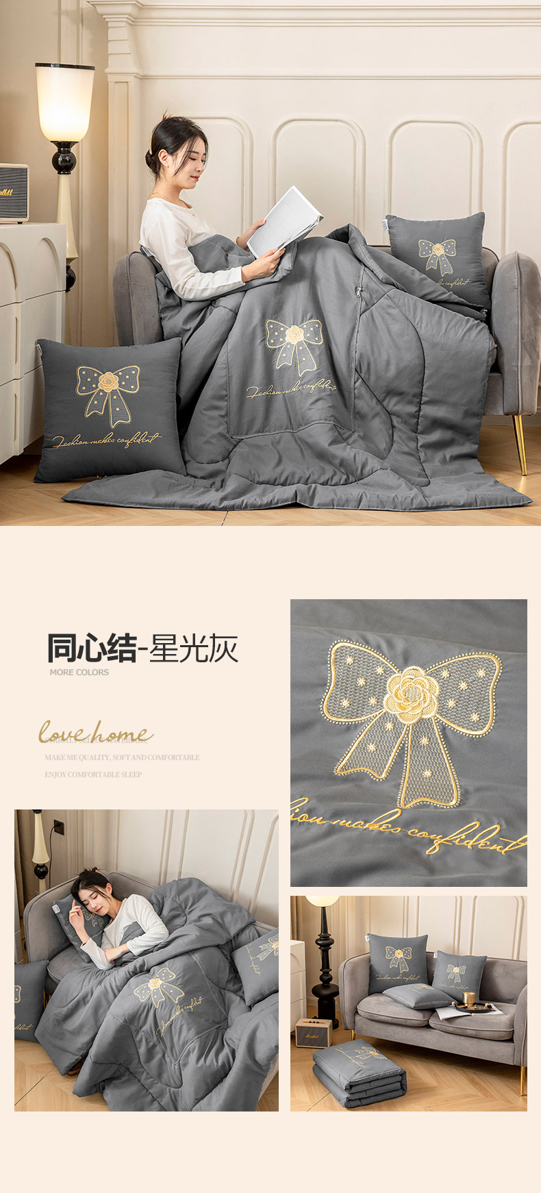 商品名称:雷人家纺 2023新款同心结系列刺绣多功能抱枕被 同心结-星光灰